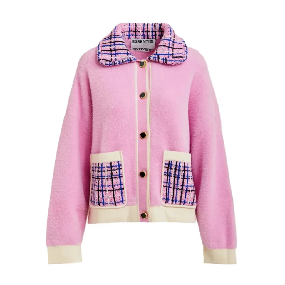 Essentiel Antwerp JOILU Strikjakke er en oversized, mellemvægt strik, der løfter afslappede looks med en kontrasterende tweedkrave og guldfarvede knapper. Dens teksturerede stof og påsyede lommer gør den til en let statement-piece til jeans og lagdelte outfits. Nøgleattributter: Pink | Off white | Blå | Polyamid | Mellemvægt strik | Blød fornemmelse | Knaplukning | Påsyede lommer | Cuffed hem | Kontrasterende tweedkrave | Guldfarvede dekorative knapper | Tekstureret strik | Ribstrikkede manchetter | Dimensioner & pasform: Oversized pasform | Dropped shoulders | Sammensætning & pleje: 100% Polyamid | Krave: 74% Bomuld, 26% Polyamid | Trim: 62% Viskose, 38% Polyester | Håndvask