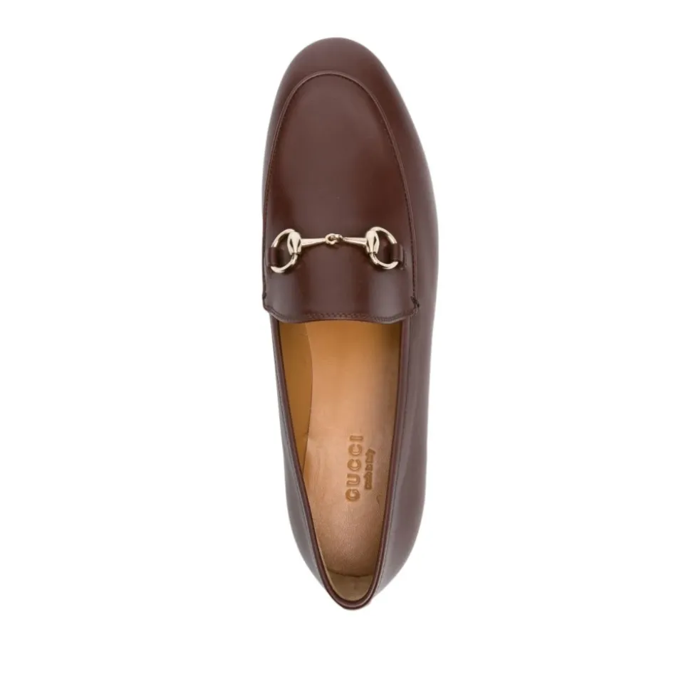 Gucci Jordaan Loafer er en raffineret flad sko udført i chokoladebrunt kalveskind, defineret af den karakteristiske Horsebit og kantdetaljer. Den leverer en poleret og alsidig mulighed for et elegant hverdagslook. Vigtigste egenskaber: Brun | Marrone scuro | Kalveskind | Slip-on design | Flad lædersål | Brandet læderindersål | Mandelformet tå | Kantdetaljer | Karakteristisk Horsebit-detalje | Glatnarvet finish | Sammensætning & pleje: Kalveskind | Læderindersål | Lædersål | Beskyt mod direkte lys, varme og regn. Hvis den bliver våd, tør den straks med en blød klud. Fyld den med silkepapir for at bevare formen, og opbevar den i den originale æske eller støvpose. Rengør med en blød, tør klud eller en blød børste.