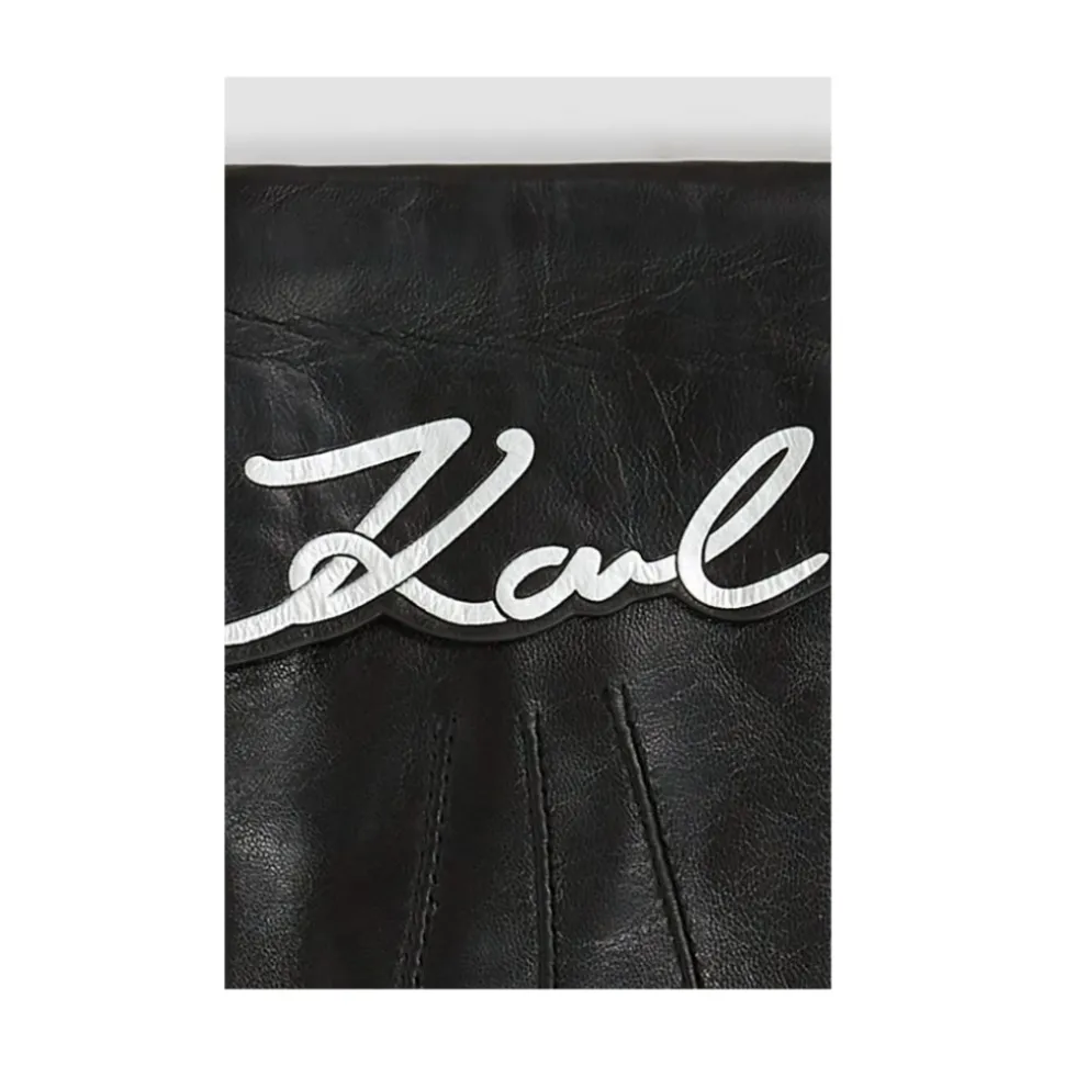 Karl Lagerfeld K/Signature Leather Gloves er læderhandsker med fulde fingre, designet til raffineret vinterbeklædning. De har en foldet manchet og KARL Signature-udsmykning for en poleret finish. Vigtige egenskaber: Sort | Gedeskind | Foldet håndledsmanchet | KARL Signature-udsmykning | Polyesterforing | Design med fulde fingre | Foldet manchet | KARL Signature-udsmykning ved manchet | Mål og pasform: Højde: 1,8 cm | Længde: 23 cm | Bredde: 10 cm | Sammensætning og pleje: 100% gedeskind | Foring: 100% polyester