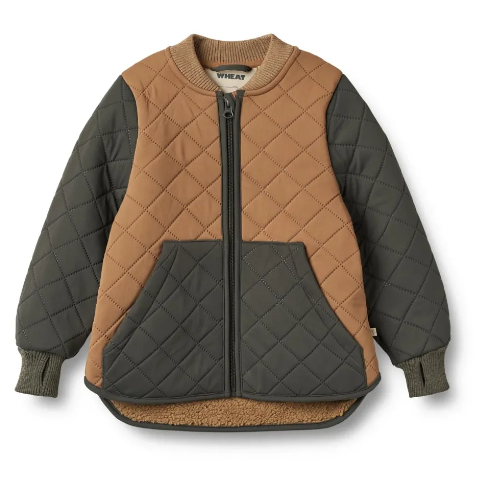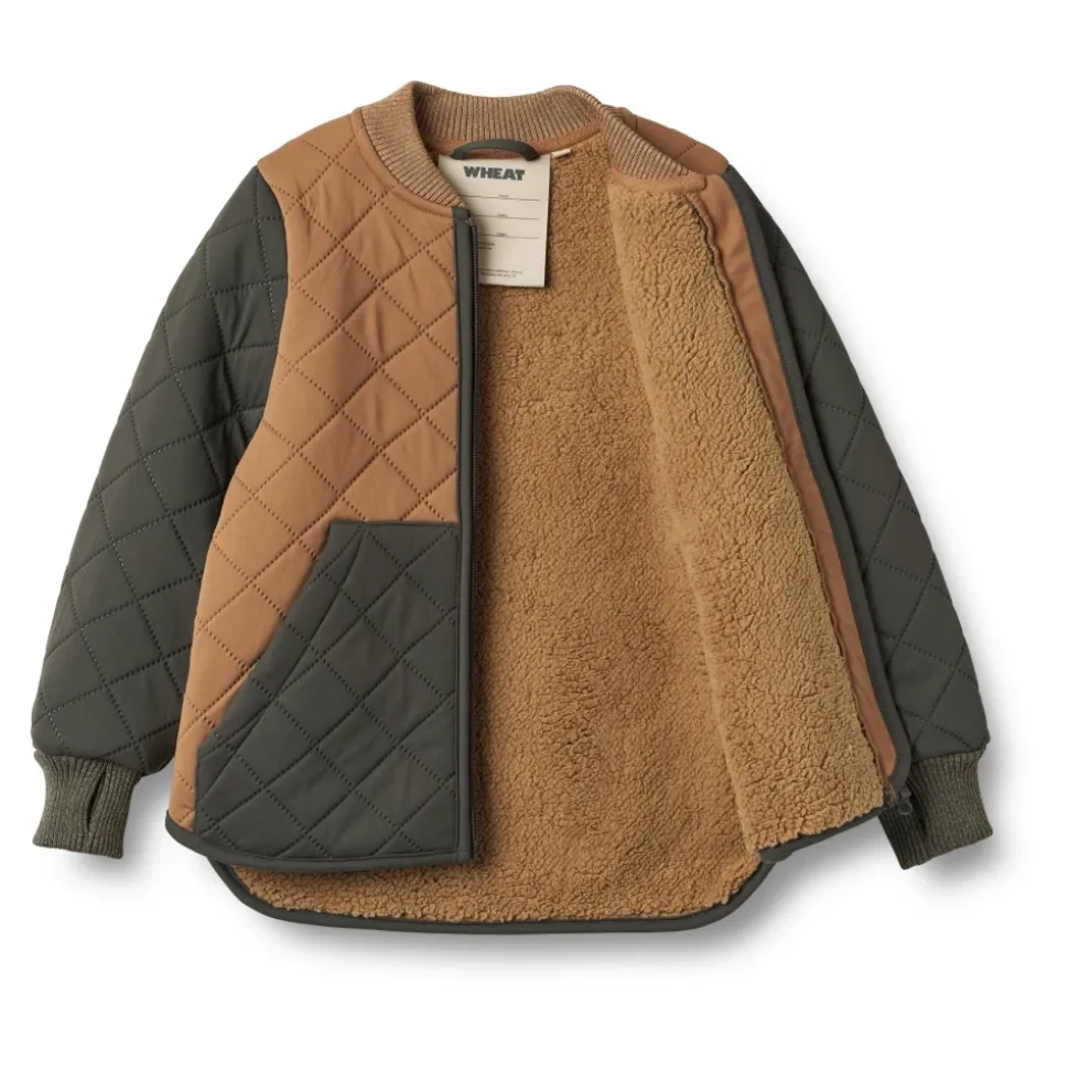 Wheat – Thermo Jacket Wulf – Caramel Super lækker termojakke med teddyfoer fra Wheat. Denne i en flot color blocking i lys brun og mørk grå.Termojakken er foret med en blød teddyfleece.Wheats populære termotøj er en sand hverdagsfavorit, da det bløde og lette materiale gør det behageligt at bevæge sig rundt i. Termojakken er produceret i 100% materiale og kan bruges både indendørs, såvel som praktisk overgangstøj, når vejret endnu er lunt udenfor. Jakken er ikke vandtæt, men er vandafvisende.Termojakken kan nemt styles med matchende termobukser i samme farve eller styles med en af vores andre termobukser i ensfarvet eller print.Den er fantastisk til overgangen fra sommer til efterår, hvor dit barn har brug for let overtøj. På de kølige dage kan termojakken styles under en regnjakke eller teknisk overtøj for bedre isolering. Materiale: 100% polyesterTeddyfor: 100% polyesterRart at vide:Normal pasformKrop foret med teddyRib kraveRibmanchetter med tommelfingerhulKængurulommerYKK lynlås med hagebeskytterReflekser3-lags materiale til den ultimative isoleringVandafvisende (ikke vandtæt)Standard 100 by OEKO-TEX®PFC-friFluorin-fri vand- og jordafvisende finish (BIONIC FINISH ECO) Vask: 30 grader skånevaskTåler ikke tørretumbler Husk at følge vaske- og brugsanvisningStyle no.: 7413k-993R GRS_5073