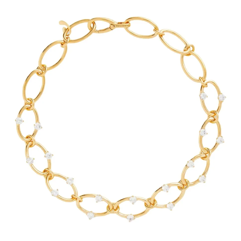 Kismet Choker fra Panconesi tilføjer diskret glans til både afslappede og festlige outfits. Dens guldbelagte finish og spredte zirconia-accenter skaber et elegant, poleret finish. Vigtigste egenskaber: Gul | Guld | Guldbelagt messing | Choker-stil | Zirconia-accenter | Guldbelagt finish | Sammensætning & pleje: 18k guldbelagt messing | Zirconia krystal