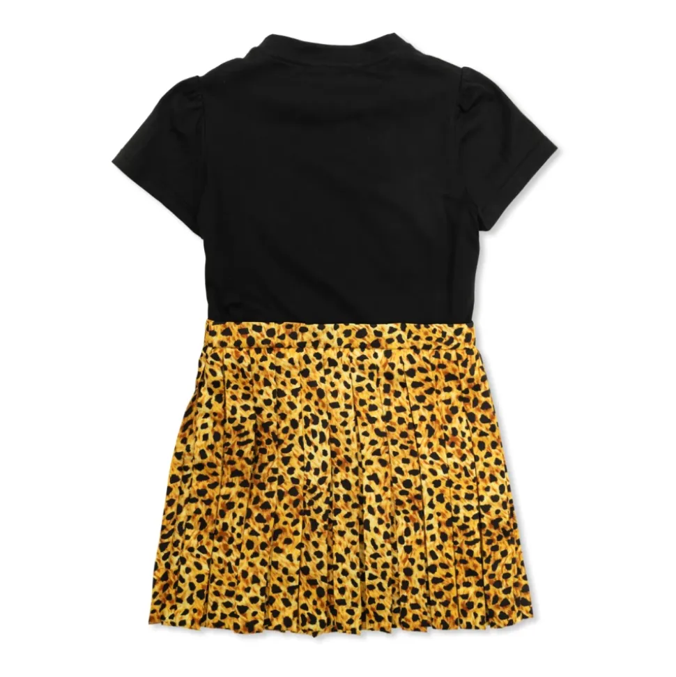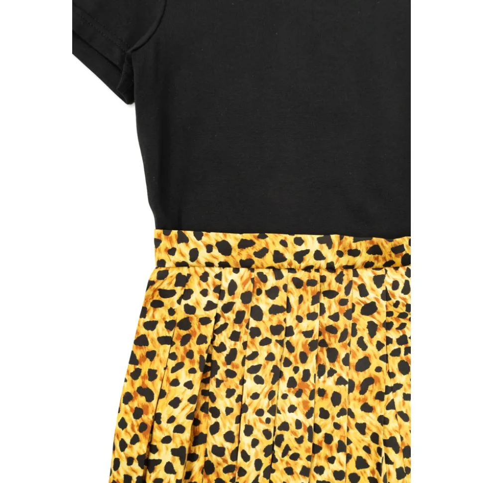 Versace præsenterer Kjolen Fremstillet af Kombinerede , et raffineret stykke tøj, der kombinerer et glat sort figursyet livstykke med en plisseret nederdel med leopardprint for at forene klassisk struktur og energiske detaljer. Nøgleattributter: Sort | Bomuld | Polyester | Komfortabel | Holdbar | Glat figursyet livstykke | Plisseret, let udskåret nederdel | Gul-sort leopardprint på nederdel | Lille applikation på skulderen | Kombinerede teksturer og kontrasterende paneler | Dimensioner og pasform: Subtilt figursyet livstykke | Plisseret, let udskåret nederdel for bevægelsesfrihed | Designet til at give komfortabel bevægelsesfrihed | Sammensætning og pleje: Bomuld | Polyester