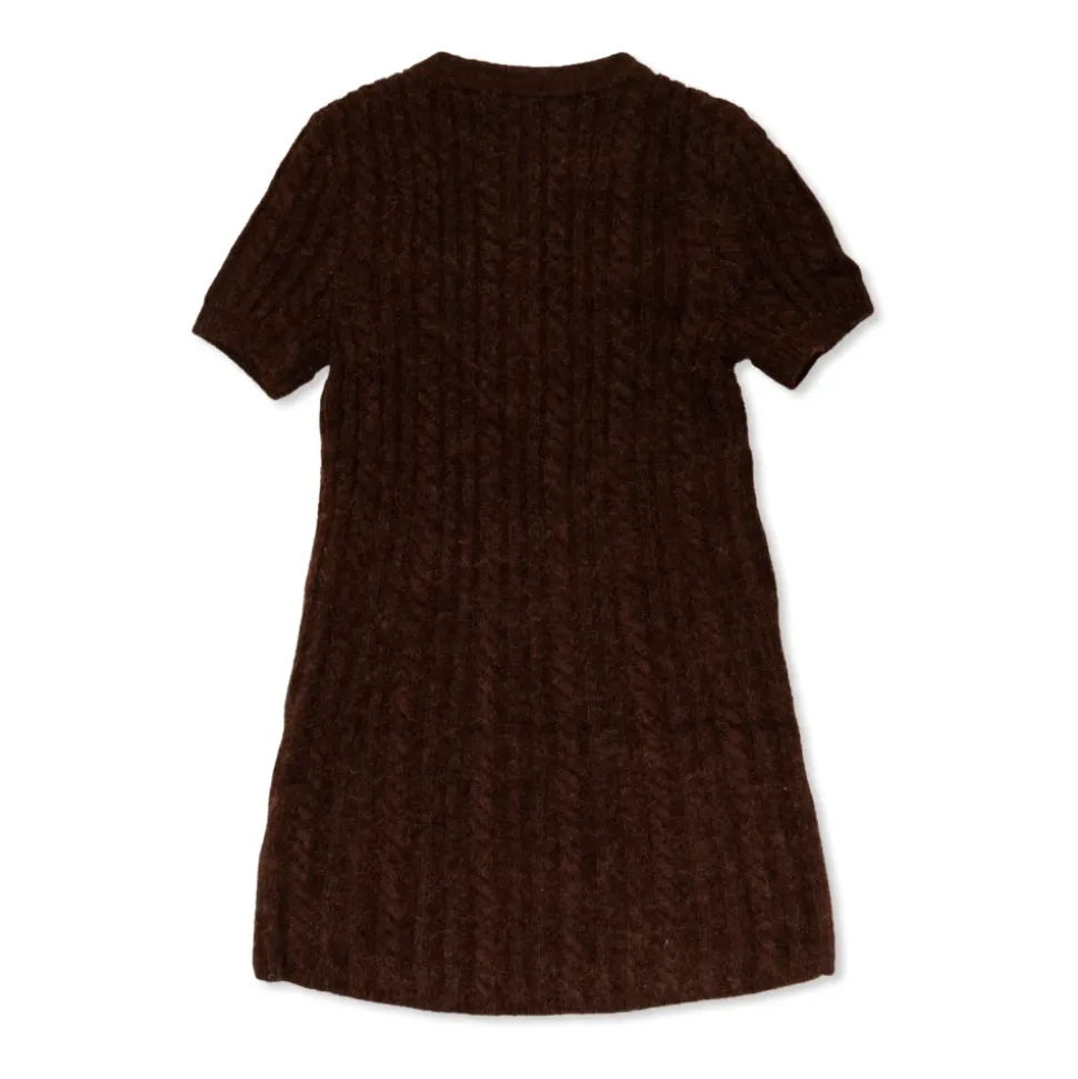 Denne elegante kjole, der har et markant, lodret kabelstrik-mønster, udstråler en ædel brun farve, der passer perfekt til æstetikken i eksklusive børnesamlinger. Dens KLASSISKE SILHUET – en lige, knælang skæring med korte ærmer og en let svajende kant – fremhæver subtilitet og tidløs karakter. Den strikkede stof, vævet af blødt, varmt garn, sikrer enestående komfort og en hyggelig følelse. De fremtrædende træk ved dette design er dens PRAKTISKE LOMMER, sømløst integreret i stykket for at fremhæve dets funktionalitet. Unikke er yderligere accentueret af et designermærke syet ved halsudskæringen med navnet SELF-PORTRAIT, et kendetegn for højeste kvalitet og prestige. HVORFOR SKAL DU VÆLGE DETTE PRODUKT? * Luksuriøst strik sikrer blødhed og komfort i brug * Unikt kabelstrik-mønster tilføjer forfinet dybde * Praktiske lommer og gennemtænkt design kombinerer elegance med funktionalitet * Kendt brand – valget for kræsne kender