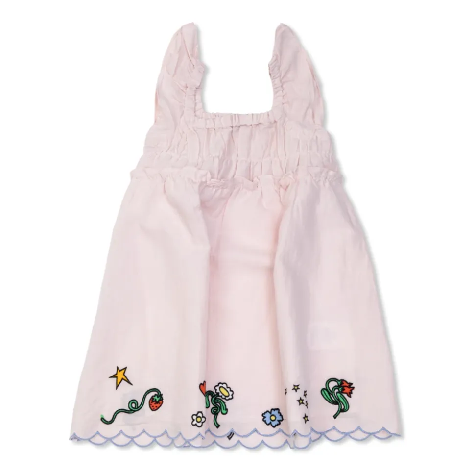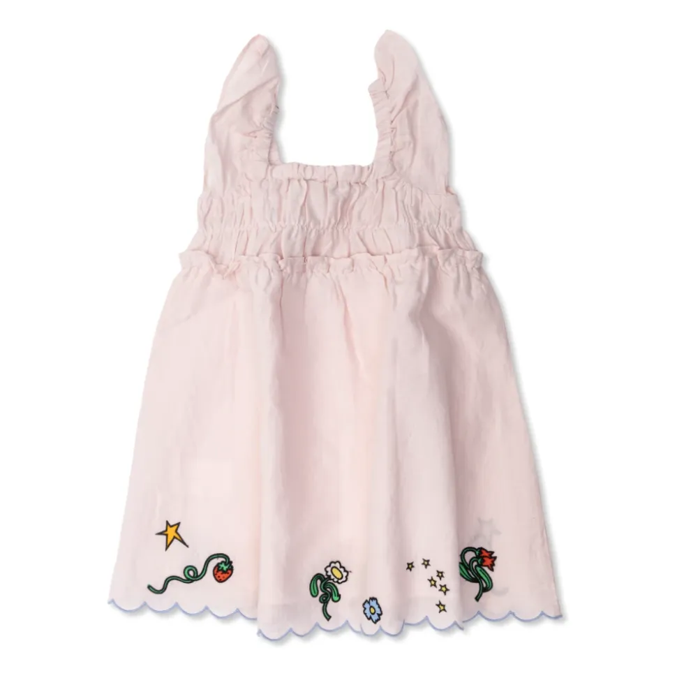 Stella McCartney præsenterer Kjolen med mærker, en let udstillet linned- og bomuldskjole fremhævet af håndbroderede, farverige applikationer ved sømmen for et finurligt, eventyrligt look. Nøgleattributter: Pink | Linned og bomuld | Åndbart stof | Letvægt | Brede, rynkede stropper | Bomuldsfor | Let udstillet silhuet | Broderede farverige applikationer langs sømmen | Muslingekant med blå kant | Dimensioner & pasform: Let udstillet pasform | Sammensætning & pleje: Linned | Bomuld | Bomuld (for) | Maskinvask 30°C.