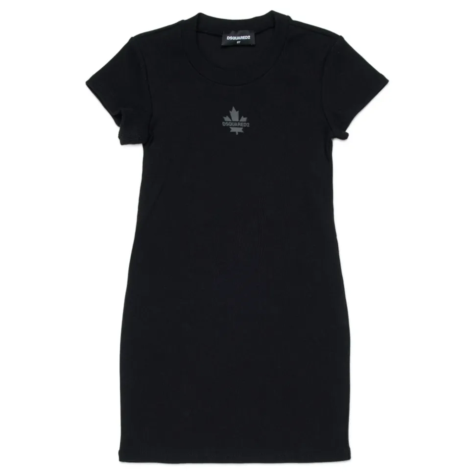 Dsquared2 ribstrikket kjole med rund hals, korte ærmer og et gummilogo, der giver en ren, brandet finish, der er velegnet til hverdagsbrug. Vigtige egenskaber: Sort | Nero | Ribstrikket tekstur | Korte ærmer | Rund hals | Gummilogo detalje
