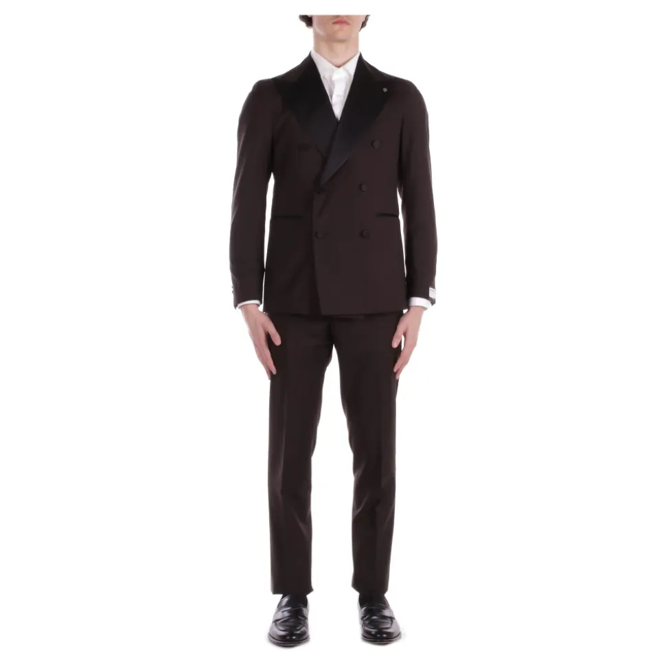 Herresuit Tagliatore Dobbeltbrystet jakke med knapper Bukser med lynlås og krog Bukser med to sidelommer og baglomme Jakke med to sidelommer Modelhøjde: 1,83 cm Størrelse brugt: 48 ita Pasform: slim Materiale: 100% ren ny uld, foring 100% cupro, foring af bukser 100% bomuld Leverandørkode: PELIS 150153M1027
