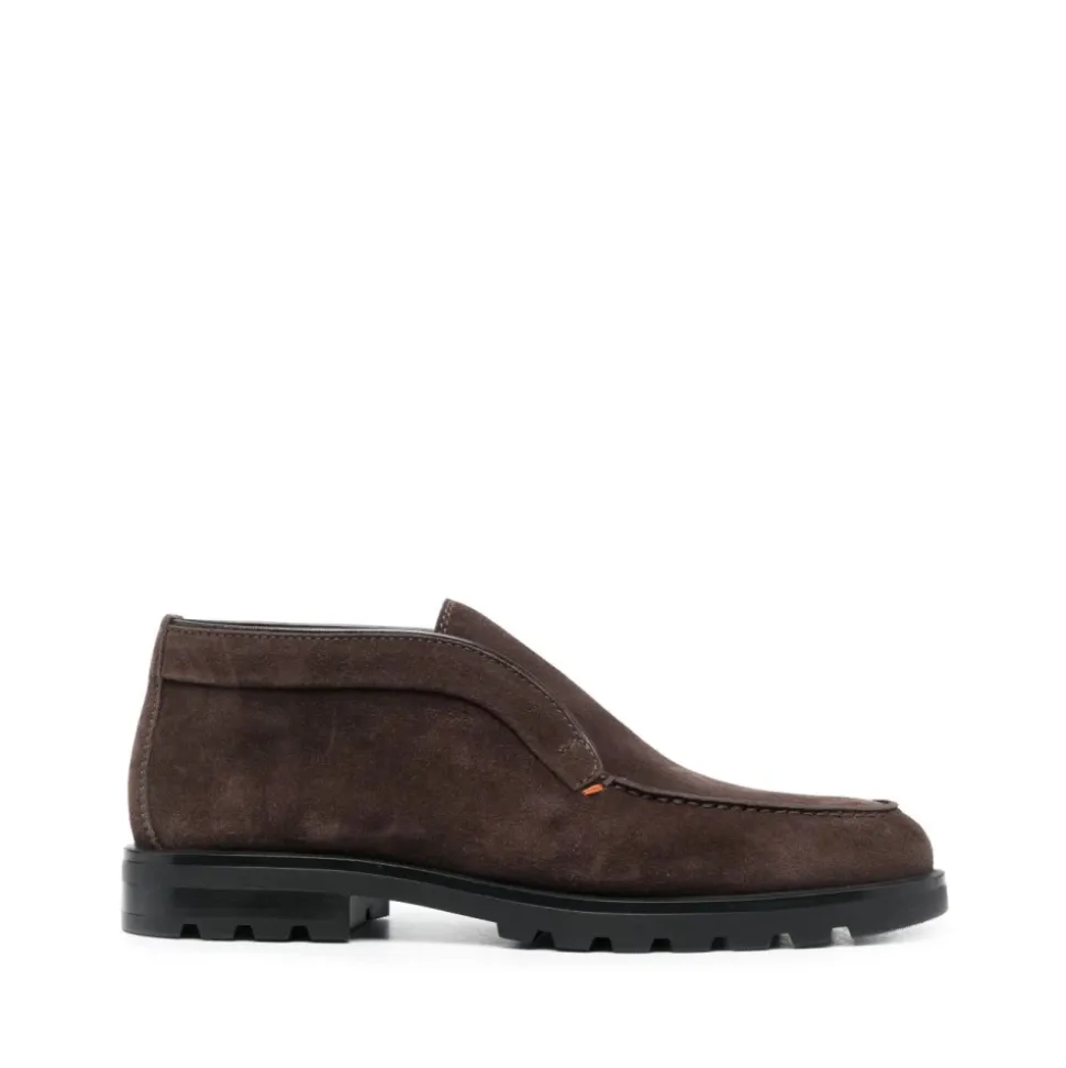 Forkæl din stil med disse Santoni ankelstøvler til mænd. Fremstillet i Italien af 100% læder, har disse støvler en læderforing og en holdbar gummisål. Findes i britiske størrelser.