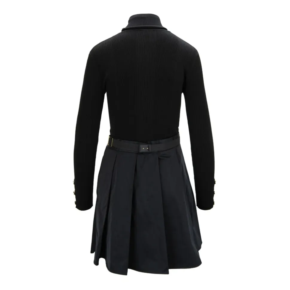 Opgrader din stil med denne sofistikerede kortærmede kjole med høj hals fra Elisabetta Franchi. Fremstillet med en luksuriøs blanding af lyocell, polyamid og silke, har den en udvidet nederdel og elegant høj krave, perfekt til overgangen fra dag til nat. Produkt detaljer: Sort | Lyocell | Polyamid | Silke | Justerbart bælte med logo-spænde | Høj krave | Udvidet nederdel | Lange ærmer med logo-prægede guldfarvede metal knapper | Logo-knapper på falske lommer | Eco-læder finish | Dimensioner og pasform: Normal pasform | Sammensætning og pleje: Lyocell | Polyamid | Silke | Renseri anbefales