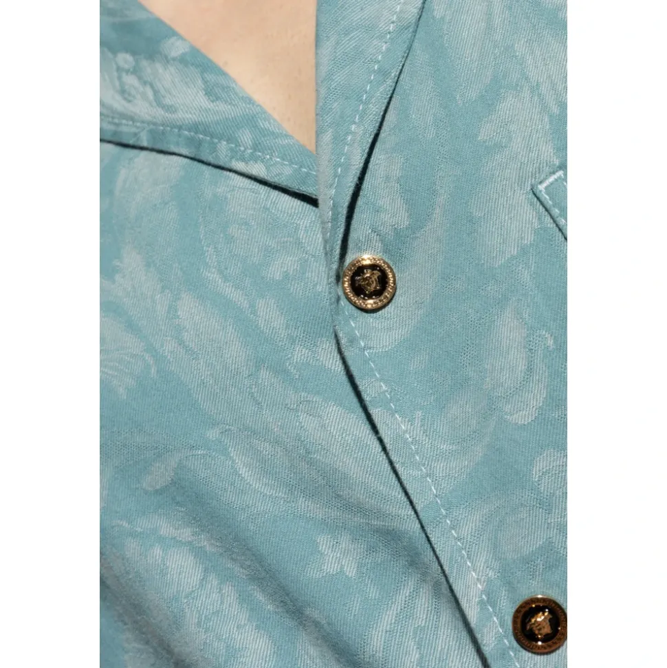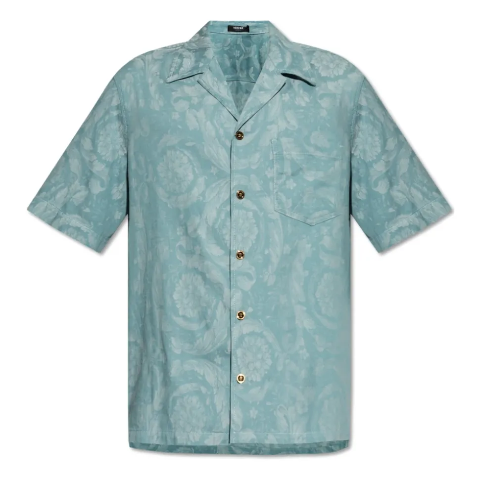 KORTÆRMET SKJORTE fra Versace udtrykker essensen af moderne elegance, der kombinerer kunsthåndværk med enestående komfort. Den klassiske, afslappede pasform med en lige kant fremhæver dens tidløse karakter, mens det subtile ornamentmønster i blå nuancer tilføjer sofistikering og forbliver en diskret æstetisk accent. Den ekstremt omhyggeligt færdige bomuldsstof – let glansfuldt og behageligt at røre ved – garanterer brugskomfort og understreger produktets eksklusive oprindelse. Klassiske knapper og en let sænket skulderlinje demonstrerer perfekt mesterskabet i italiensk håndværk. Denne skjorte er en udtryk for prestige og modet til at fejre individualitet, hvilket gør den til det perfekte valg for kenderne af raffineret stil. HVORFOR VÆLGE DETTE PRODUKT? * Eksklusivt Versace-design inspireret af italiensk tradition * Perfekt kombination af komfort og sofistikering * Høj kvalitet bomuldsstof sikrer holdbarhed * Omhyggeligt designede detaljer og mesterlig finish Modelmålinger Højde: 185 cm Bryst: 92 cm Talje: 74 cm Hofter: 91 cm Modellen har størrelse: 50