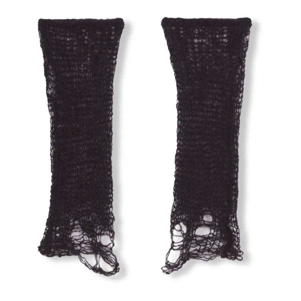 De korte åbne strikhandsker fra Cortana tilføjer et stilfuldt touch til ethvert outfit med deres unikke design og håndværk af høj kvalitet. Perfekte til at tilføje elegance til din accessories-samling. Produkt detaljer: Sort | Naturfibre | Korte ærmer med fingerhul | Flossede kanter | Åben strikstruktur | Dimensioner og pasform: Normal pasform | Sammensætning og pleje: Naturfibre af høj kvalitet | Renseri anbefales