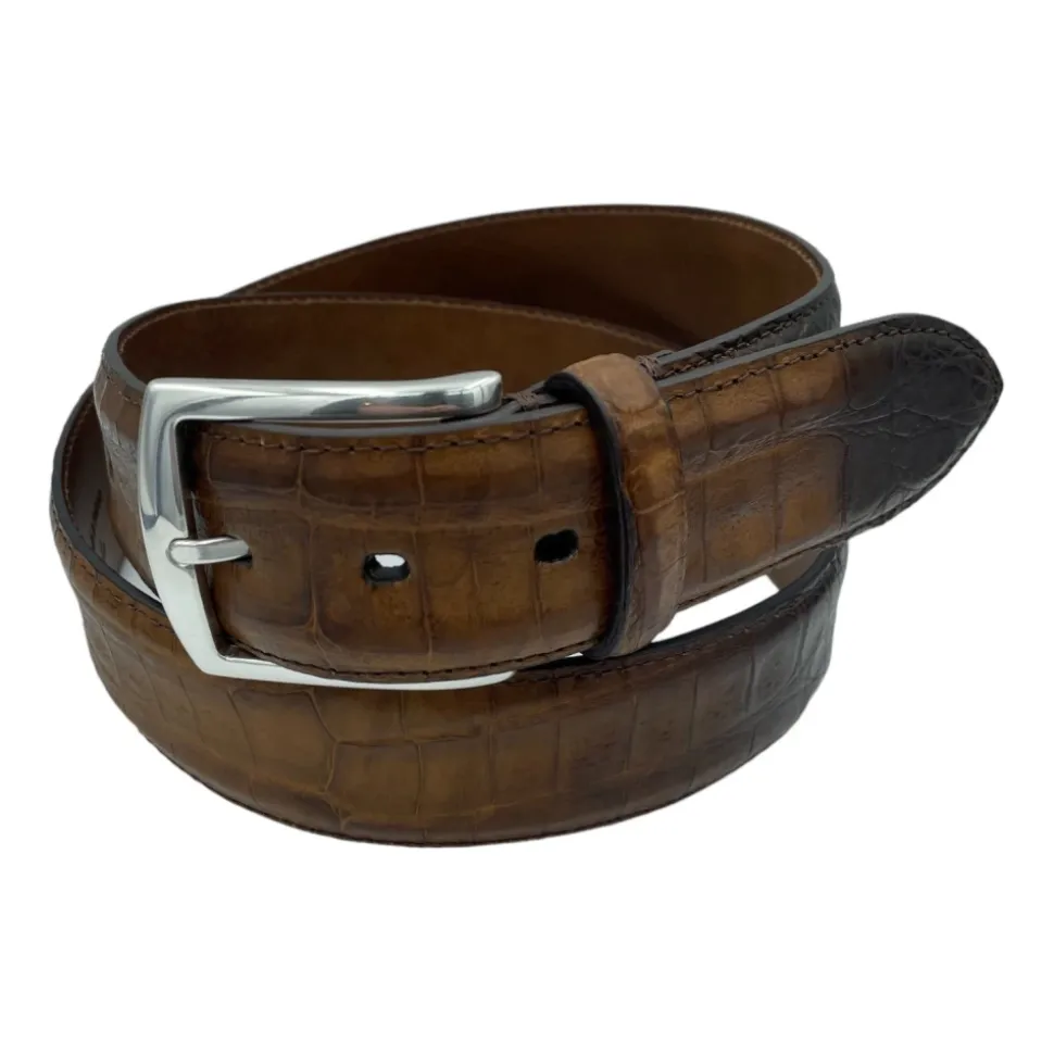 Paolo Vitale krokodillelæderbælte er et eksklusivt, håndlavet tilbehør fremstillet af certificeret krokodillelæder. Det skiller sig ud med sit solide messing spænde og italienske håndværk. Vigtige egenskaber: Brun | Lysebrun | Krokodillelæder | Solid messing spænde | Håndlavet i Italien | Certificeret krokodillelæder | Sammensætning & pleje: Krokodillelæder | Messing