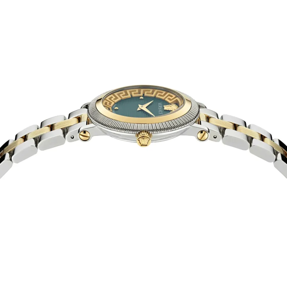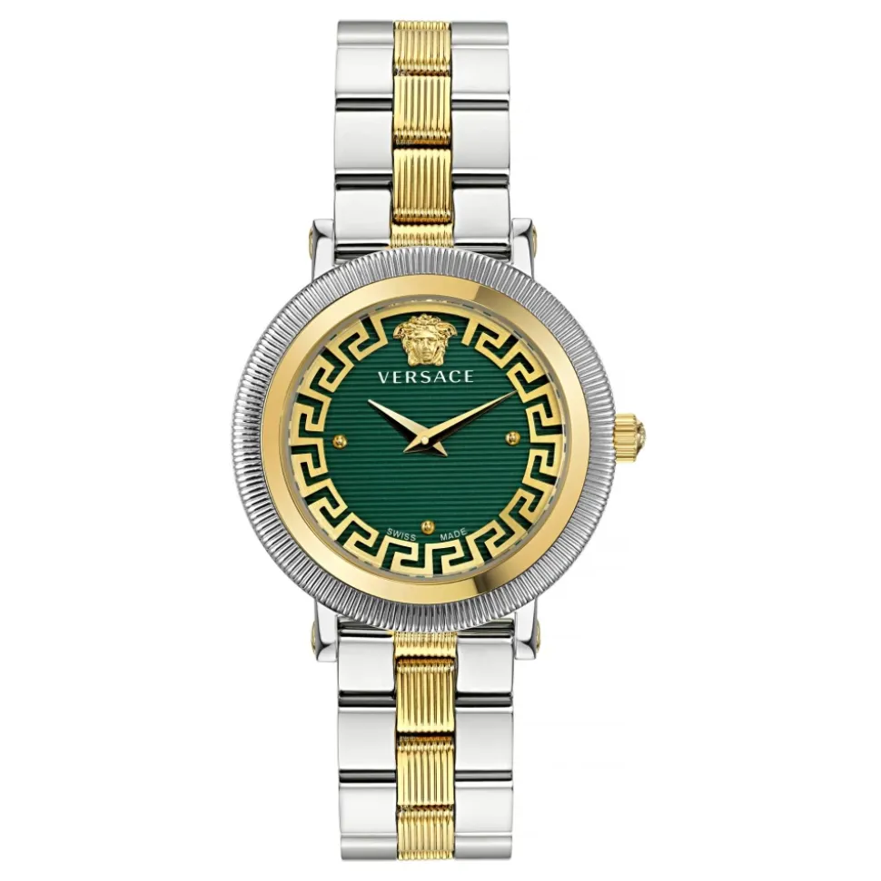 Forkæl dig selv med dette Versace GRECA FLOURISH VE7F00523 ur i sølv- og guldtoner. Med en 35 mm rustfrit stål urkasse, rustfrit stål IP-belagt armbånd, safirglas, kvarts bevægelse, analog visning, vandtæthed op til 5 bar og schweizisk kvalitet.