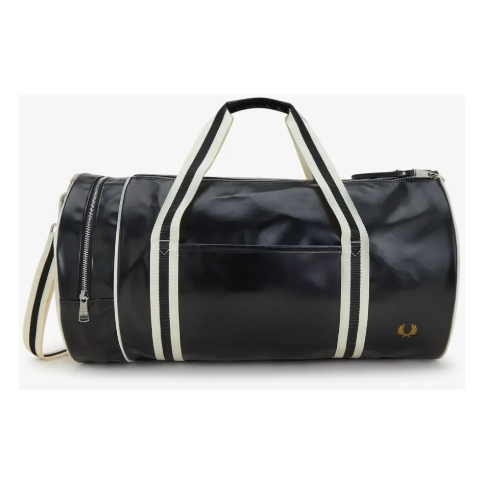 Fred Perry L9266 D57 Oversized Weekendtaske er en ekstra stor sportstaske designet til weekendture og hverdagsrejser, med en TPU-belagt polyesteroverflade for øget vand-, UV- og slidstyrke. Nøgleattributter: Sort | Polyester | Vandafvisende | UV-bestandig | Slidstærk | Dobbelt lynlåsåbning foroven | Lynlåsrum i enden | Justerbare crossbody-stropper | To bærehåndtag foroven med ribkant | Kan bæres crossbody eller i hånden | Guldfarvet laurbærkrans-prægning på frontpanelet | Kontrastlogo på endepaneler | Afrundet endelomme | Ribkant på bærehåndtag | Mål & pasform: Ekstra stor størrelse, der er velegnet til weekendture og sportsrejser | Sammensætning & pleje: 100% polyester | Må ikke vaskes. Tørres af med en fugtig klud.