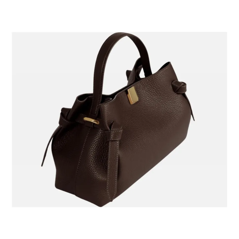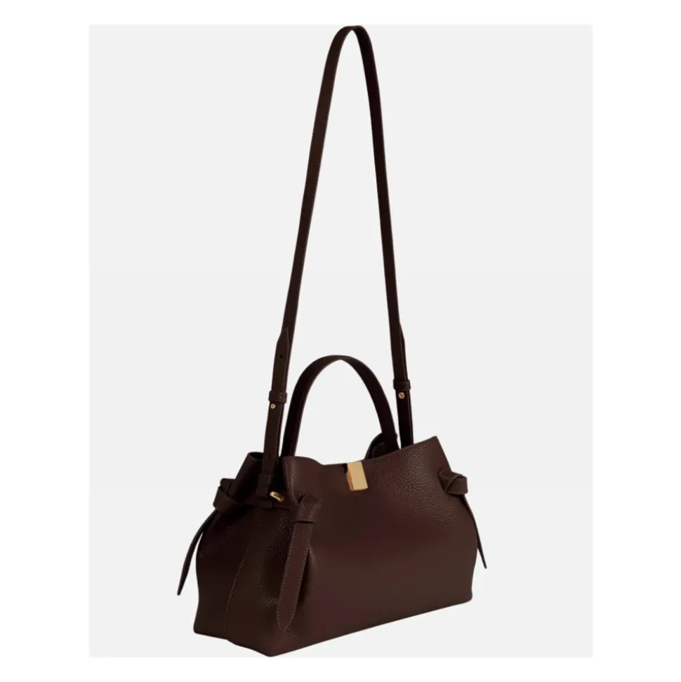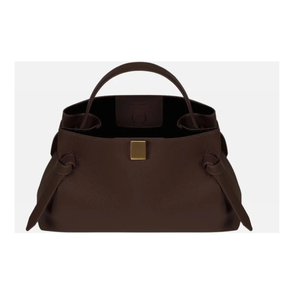 Yuzefi La Gyoza er en struktureret håndtaske fremstillet i italiensk pebble-grain læder med et tophåndtag og elegant guldfarvet hardware. Designet til daglig brug, organiserer den de vigtigste ting, samtidig med at den tilbyder både tophåndtag og crossbody-muligheder. Nøgleattributter: Brun | Marrone | Læder | Tophåndtag | Justerbar og aftagelig skulderrem | Magnetisk lukning | Struktureret silhuet | Pebble-grain tekstur | Guldfarvet hardware | Håndlavet håndværk | Mål og pasform: Topbredde: 23 cm | Bundbredde: 32 cm | Dybde: 11 cm | Højde (uden håndtag): 18,5 cm | Holder hverdagens fornødenheder: telefon, nøgler, læbestift | Konvertibel bæring: tophåndtag eller crossbody | Sammensætning og pleje: 100% okselæder (ydre) | Foring: 50% polyamid, 50% polyurethan