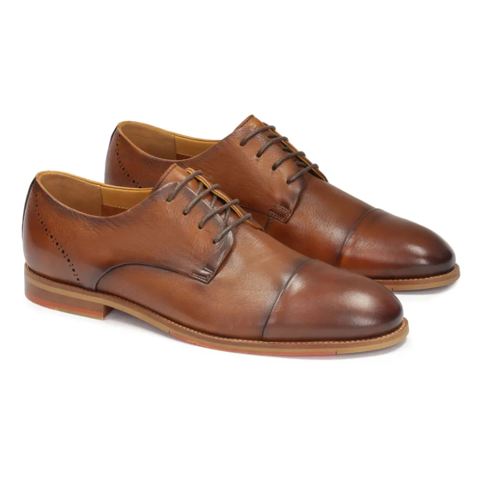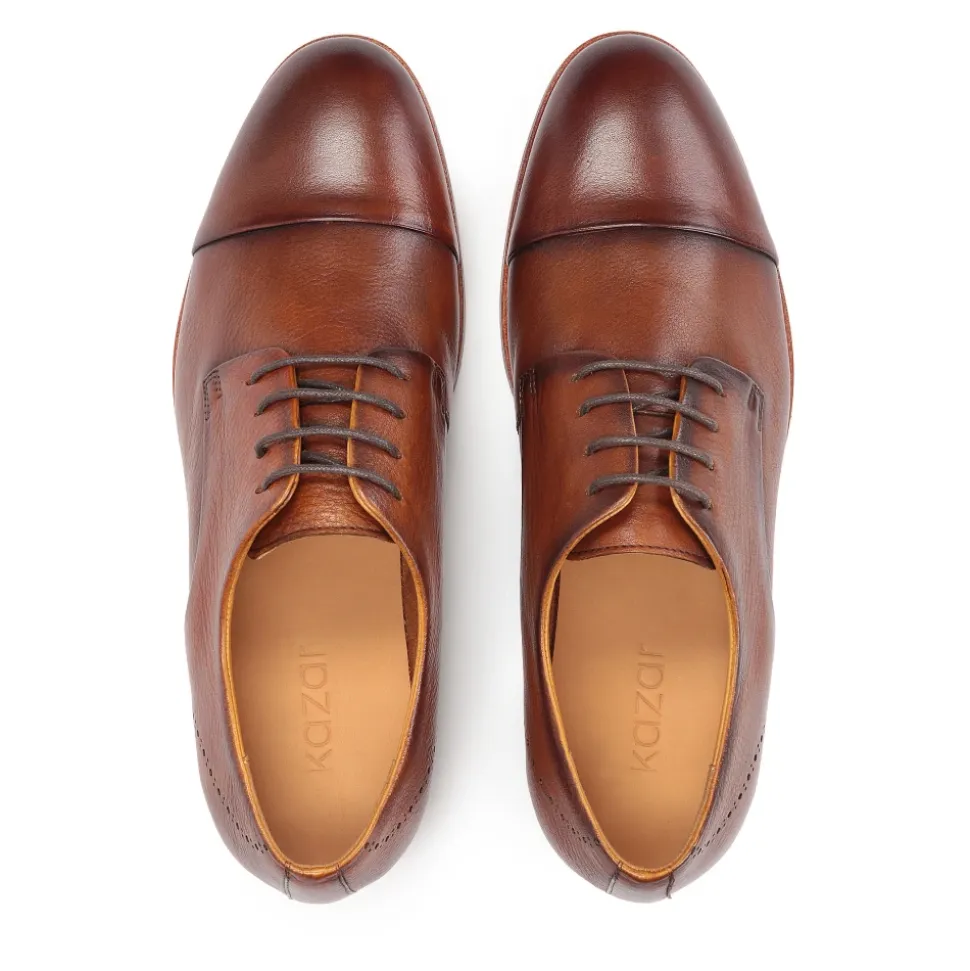 Elegante halvsko sat på en kontrastfarvet sål blev lavet af høj kvalitet kornlæder i brun farve med let skygge. Den slanke skæring med en åben tå er ekstremt behagelig og praktisk i brug. En interessant dekoration er rosetornamentet på hælen, som tilføjer et strejf af nonchalance til det hele. Brune halvsko vil se godt ud med dragter, jeans og chinos. Skoens indre foret med naturligt læder garanterer hygiejniske forhold og høj komfort.