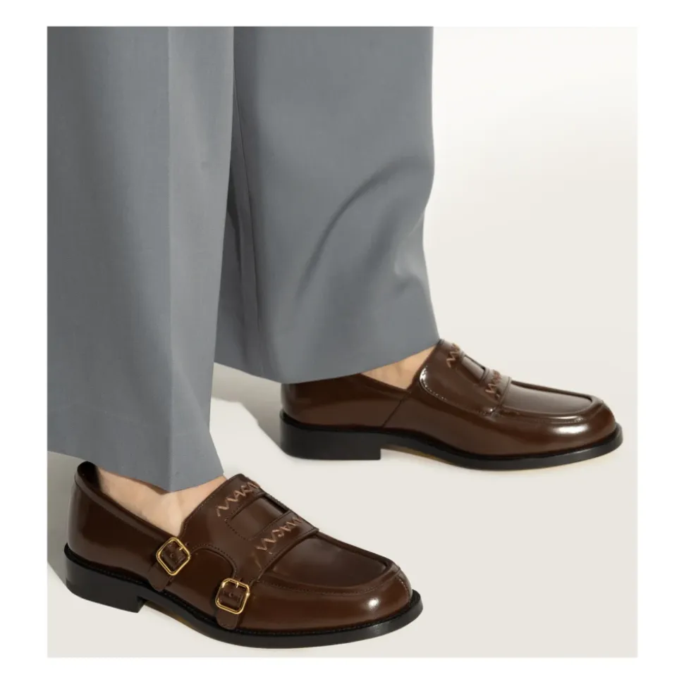 BRUNE LÆDER LOAFERS fra Marnis eksklusive kollektion er inkarnationen af tidløs elegance i en moderne fortolkning. Håndværksmæssigt fremstillet af høj kvalitet, blankt patentlæder, imponerer de med en klassisk silhuet med en let forlænget tå og en lav hæl, der sikrer enestående komfort. Den ensartede, dybe brune farve og den enkle linje i overdelen fremhæver fodtøjets raffinerede karakter, mens den dekorative rem med guldbespænder og zigzag-cremefarvet syning tydeligt refererer til Marnis unikke designerstil. Hvert element – fra ydersiden til indersiden og sålen – er lavet af naturlæder, hvilket garanterer holdbarhed og en luksuriøs finish. HVORFOR SKAL DU KØBE DETTE PRODUKT? * Raffinerede detaljer karakteristiske for Marni-mærket * Omhyggeligt udvalgte, naturlige materialer * Enestående holdbarhed og komfort * Universal, tidløst design egnet til en række looks * Subtile gulddetaljer, der forstærker eksklusiviteten Sål højde: 1cm Sål højde på det højeste punkt: 3cm