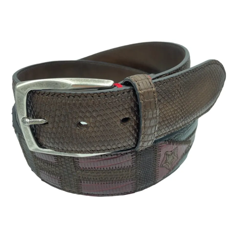 Paolo Vitale læderbælte har flagmotiver og et solidt messing spænde for en raffineret hverdagsfinish. Håndlavet i Italien kombinerer det dekorative detaljer med klassisk spænde lukning. Nøgleattributter: Brun | Brun | Læder | Solidt messing spænde | Flagmotiver | Håndlavet i Italien | Certificeret firbensskind | Sammensætning & pleje: Læder