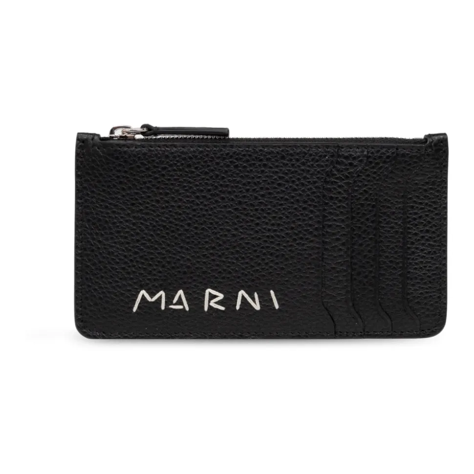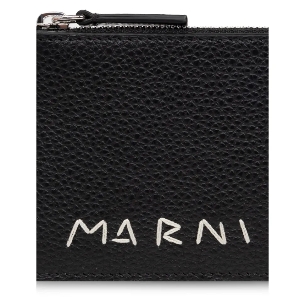 Oplev Marni Læderkortholderen, en blanding af elegance og praktisk anvendelighed. Denne kortholder er fremstillet af førsteklasses kalveskind og har en kornet tekstur og et minimalistisk design, hvilket gør den til et alsidigt tilbehør til enhver lejlighed. Produkt detaljer: Sort | Kalveskind | Fire kortpladser | Ekstra lomme med lynlås | Afrundede hjørner | Sølvfarvet metalfinish | Diskret hvidt designerlogo |