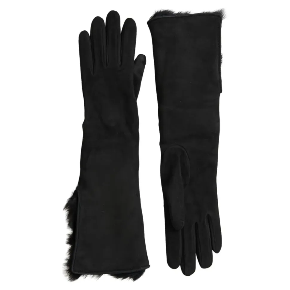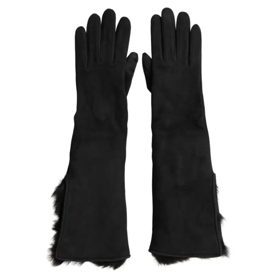 Præsenterer de splinternye Dolce Gabbana albuelange handsker til mænd. Disse handsker er lavet af en luksuriøs kombination af gedeskind (60%) og lammeskind (40%), med en stilfuld pelskant. Den 100% kashmirforing sikrer ultimativ komfort og varme. Håndlavet i Italien, fremviser disse handsker subtile logo detaljer. Opgrader din vintergarderobe med disse eksklusive handsker.