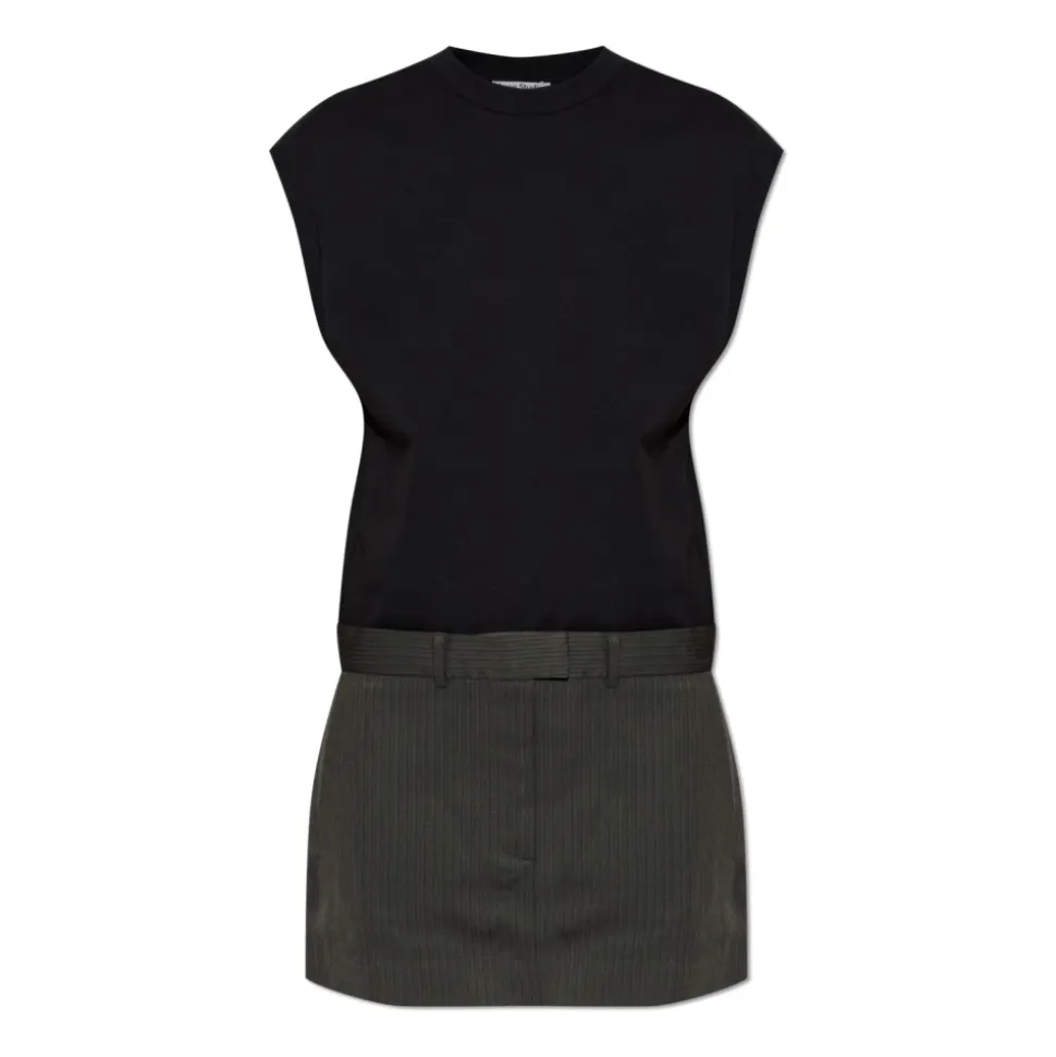 Acne Studios Lagdelt Kort Kjole kombinerer en ribstrikket bomuldsjersey-top med en mini-nederdel med sildebensmønster for en moderne lagdelt silhuet, der balancerer minimalistiske linjer og skræddersyede detaljer. Vigtige egenskaber: Sort | Bomuld, Viskose | Holdbar | Komfortabel | Bæltestropper | Lommer | Falsk gylp | Brandede nitter og kæde | Høj halsudskæring | Ærmeløs | Muscle tee-style skuldre | Lagdelt konstruktion | Nederdel med sildebensmønster | Midt-lår længde | Dimensioner og pasform: Modelhøjde: 177 cm | Bryst: 83 cm | Talje: 61 cm | Hofter: 89 cm | Modellen er iført størrelse: 36 | Regular fit | Midt-lår længde | Sammensætning og pleje: Shell: 100% Bomuld | Kontrast: 100% Viskose | For: 100% Viskose | Maskinvask kold, skånsom cyklus. Må ikke tørretumbles. Køligt strygejern hvis nødvendigt. Eller renses.