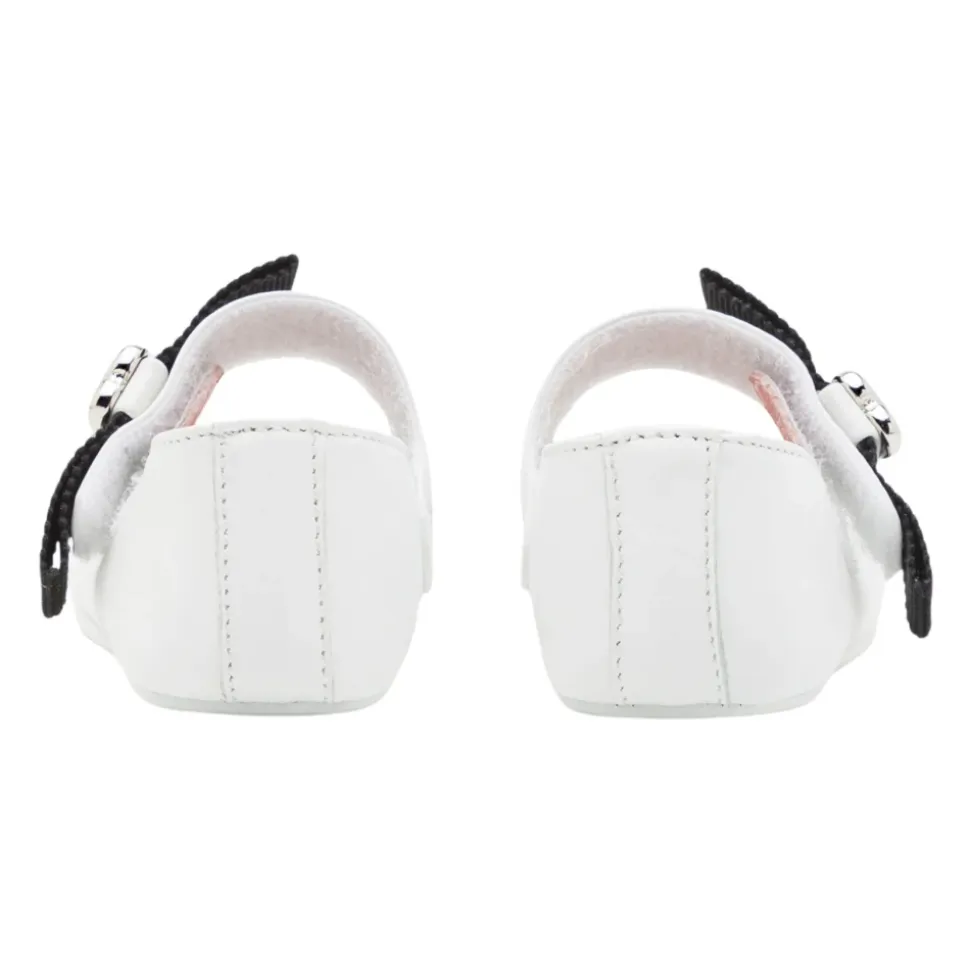 Moschino laminerede Nappa ballerina sko opdaterer en klassisk ballerinaform med en grosgrain sløjfe, logo og metalhjerte for en signaturfinish. Designerkode: MNT80388MK440 (80388/PIABIANCO). Nøgleattributter: Hvid | Læder | Velcrolukning | Grosgrain sløjfe | Logo detalje | Metalhjerte på siden | Trykt logo på sålen | Fremstillet i Italien | Dimensioner & pasform: Europæiske størrelser | Sammensætning & pleje: Overdel: 100% gedeskind | Foring: læder | Sål: lædersål med præg