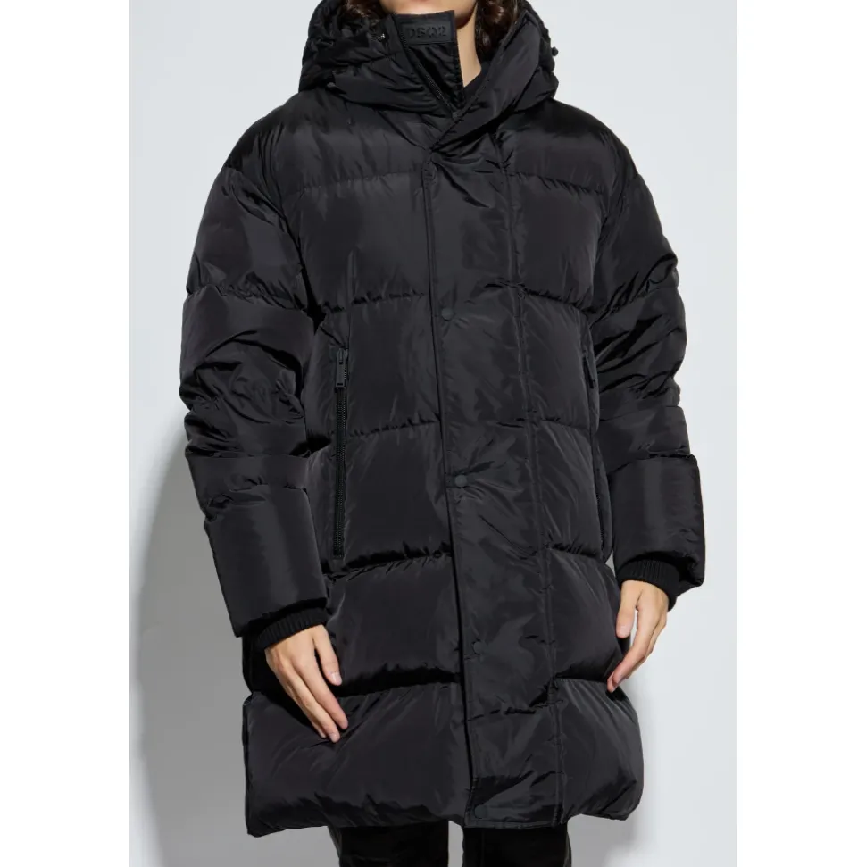 LANG DUNJAKKE fra DSQUARED2 er det perfekte valg for mænd, der værdsætter unikt design og topkomfort på koldere dage. Den dybe sorte farve og den subtile glans på det ydre materiale giver den et sofistikeret præg, mens den brede, voluminøse hætte og let forlængede ryg giver maksimal beskyttelse mod kulde og vind. Jakken imponerer med sin enkle, oversized pasform, der slutter over knæene, hvilket sikrer bevægelsesfrihed og enestående bærekomfort. Den vandrette, brede quiltning fremhæver ikke kun modellens eksklusive karakter, men fordeler også effektivt varmen og holder den tæt på kroppen takket være det fyldige dunfyld. Et markant detalje er den massive sorte lynlås med det karakteristiske prægede designerlogo. Dette er en diskret hilsen til mærkets kunstneriske rødder, der sømløst blander luksus med hverdagens funktionalitet. HVORFOR VÆLGE DETTE PRODUKT? * Enestående beskyttelse mod ugunstige vejrforhold * Luksuriøs dunkomfort og let følelse * Moderne snit, der forstærker individuel stil * Eksklusivt finish og omhyggelig opmærksomhed på design detaljer * Signatur fra det anerkendte Dsquared2-mærke Modelmålinger Højde: 193 cm Bryst: 95 cm Talje: 82 cm Hofte: 93 cm Modellen har størrelse: L