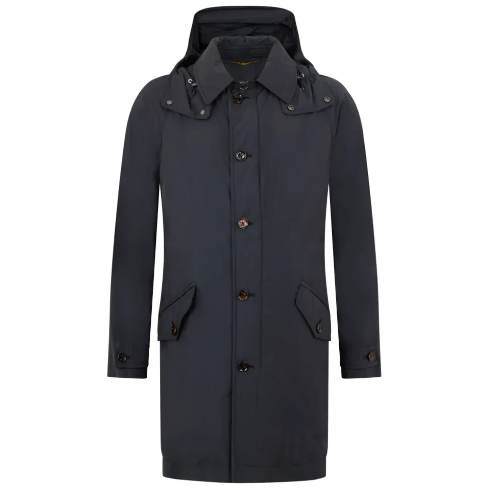 Moorer lang jakke elegant med integreret hætte kombinerer en moderne, strømlinet silhuet med en integreret hætte for praktisk dækning. Dens slidstærke bomuldsblanding gør den til et alsidigt valg til køligere dage. Nøgleattributter: Blå | Bomuld | Slidstærkt stof | Velegnet til køligere vejr | Integreret hætte | Knaplukning foran | Sidelommer | Lang længde | Elegant moderne snit | Minimal detaljering | Sammensætning & pleje: 73% Bomuld | 15% Polyester | 12% Polyamid