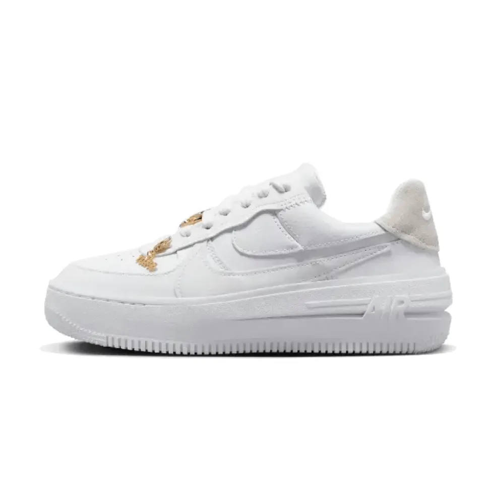 Nike Air Force 1 Low PLT-AF-ORM Bling er en unik og luksuriøs udgave af den klassiske Air Force 1-model, der adskiller sig med sit elegante og skinnende design. En del af PLT.AF.ORM-serien, disse sneakers udforsker nye territorier inden for design og introducerer innovative æstetiske elementer. Med en klassisk Air Force 1-silhuet er disse sko beriget med unikke, skinnende detaljer såsom dekorative elementer eller krystalaccenter, der tilføjer eksklusivitet og blander klassisk stil med moderne modetendenser. Udstyret med perforeringer ved tåen for bedre ventilation og en solid Nike Air-støddæmpende mellemsål, er disse sneakers perfekte til dem, der værdsætter en unik stil og eksklusivt look. Den holdbare gummisål sikrer langvarig slid og fremragende greb, hvilket gør dem til et ideelt valg til elegante byoutfits, der tilføjer glans og luksus til ethvert outfit.