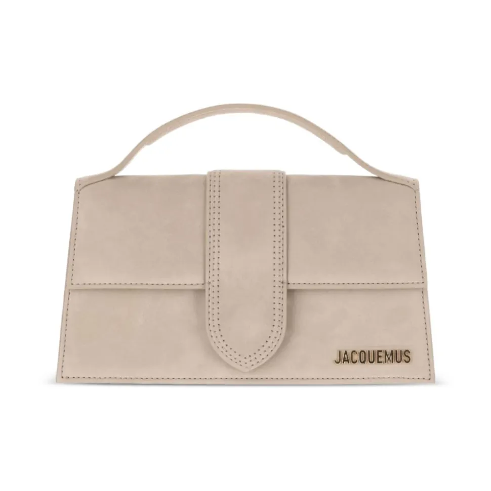 Jacquemus Le Grand Bambino er en struktureret crossbody taske med klap, en vandafvisende nubuck-finish og et polstret top håndtag. Den kombinerer en magnetisk klaplukning med en aftagelig lang rem for alsidig hverdagsbrug. Vigtige egenskaber: Beige | Mørk beige | Koskind | Vandafvisende | Polstret top håndtag | Magnetisk klaplukning | Lang aftagelig rem | Graverede hummerlukninger | Baglomme | Fuldt foret | Klapsilhuet | Topstitchede detaljer | Guldmetal logo og hardware | Farvede kanter | Struktureret silhuet | Dimensioner og pasform: 23.5 x 13 cm | Sammensætning og pleje: 100% Koskind | 100% Bomuld (foer)