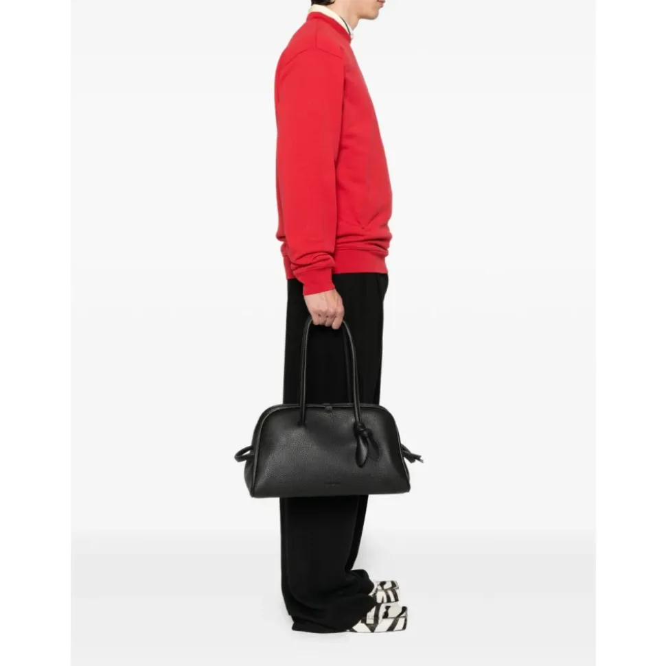 Jacquemus Le Turismo er en struktureret tote taske i kalveskind, designet til rejser og hverdagsbrug, med en knude-hank detalje og en sikker lynlåslukning. Nøgleattributter: Sort | Kalveskind | Top lynlåslukning | Skjult magnetisk lukning | Indvendig lynlåslomme | To rullede tophanke | Knude detalje på hank | Struktureret rektangulær silhuet | Tekstureret/kornet finish | Præget logo | Dobbelt hank design | Dimensioner & pasform: Bredde: 39 cm | Højde: 21 cm | Dybde: 17 cm | One size | Sammensætning & pleje: Ydre: 100% kalveskind | Foring: 100% bomuld