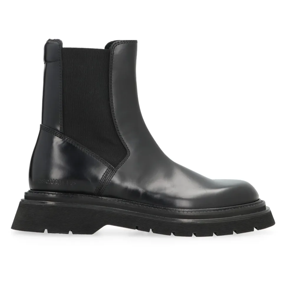 Dsquared2 Leather Chelsea Boots opdaterer den klassiske Chelsea-silhuet med elastiske sidepaneler og en rund tå for alsidighed i hverdagen. Designet kombinerer en overdel i kalveskind med en markant sål med knopper for pålideligt greb og et street-parat look. Vigtige egenskaber: Sort | Kalveskind | Kraftig knopsål | Elastiske sidepaneler | Rund tå | Sammensætning og pleje: 100% Polyurethan | 100% Kalv