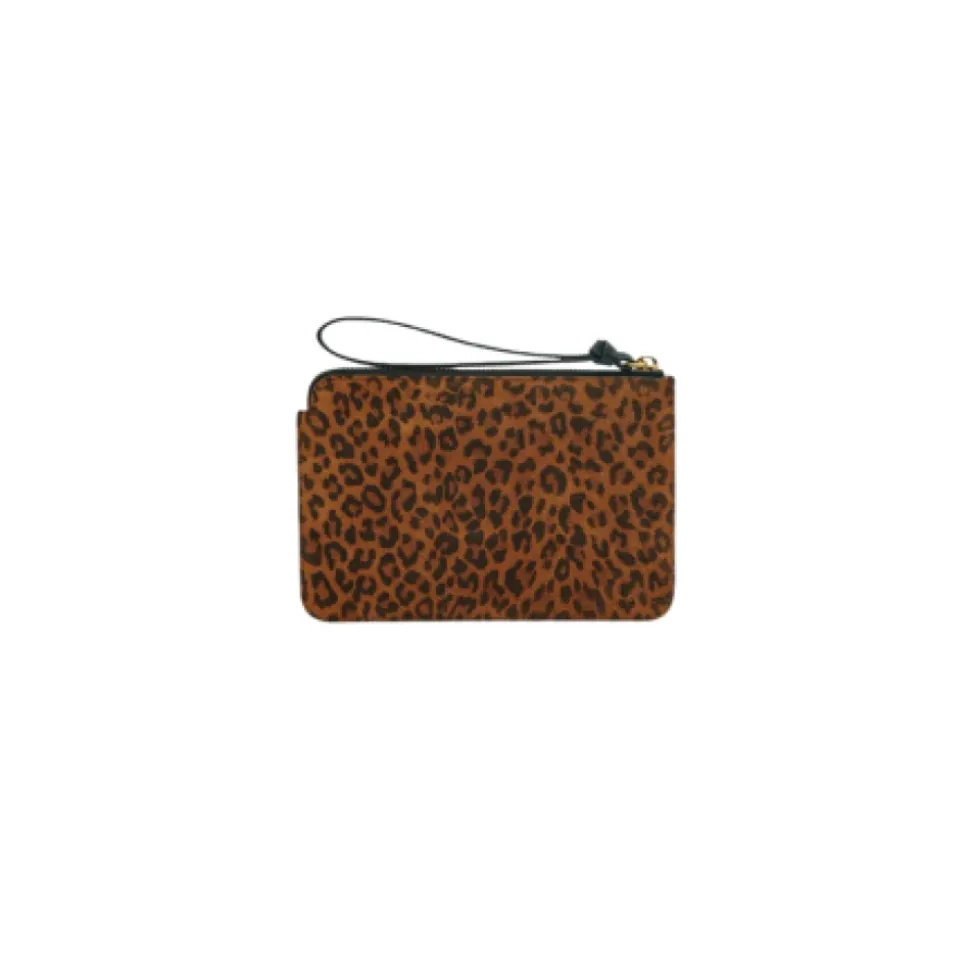 Denne Isabel Marant clutch kombinerer dristighed og elegance med sit leopardtryk i ruskind. Prydet med små gyldne nitter øverst lukkes den med en diskret lynlås og kan bæres i hånden eller skubbes ned i en større taske. Et chic og praktisk tilbehør til at forbedre dine outfits.
