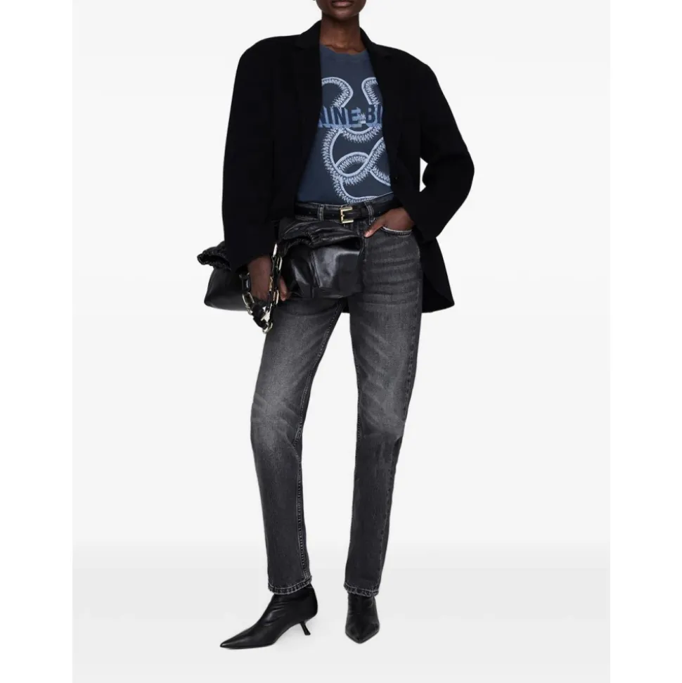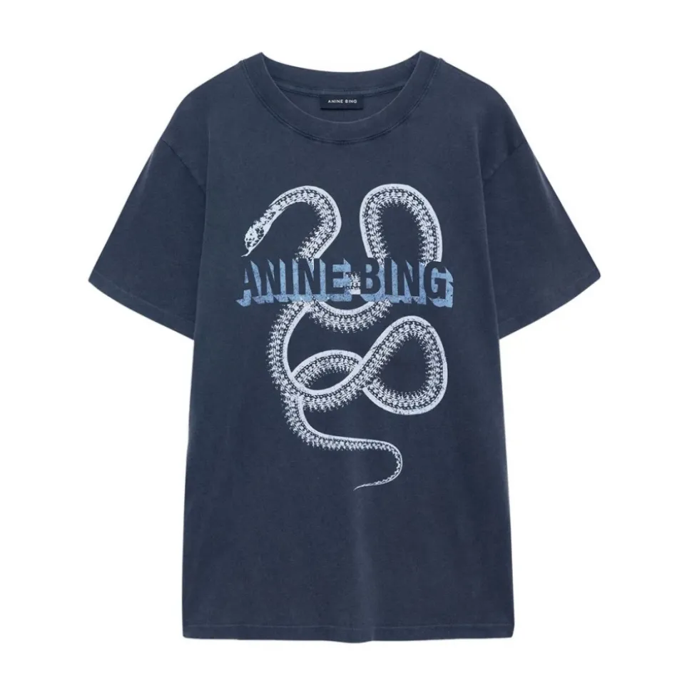 Anine Bing Lili Tee er en vasket sort bomulds T-shirt med en markant slange grafik og trykt logo. Den leverer et vintage, slidt look, der passer til afslappet hverdagsbrug. Nøgleattributter: Sort | Vasket sort | Bomuld | Letvægt | Åndbart stof | Lige kant | Lag-på-lag design | Rund hals | Korte ærmer | Ribstrikket krave | Grafisk slangeprint | Trykt logo på fronten | Vasket finish | Dimensioner og pasform: Størrelseskort (cm) — Bryst: XXS 78.7 | XS 82.6 | S 87.6 | M 93 | L 97.8 | XL 101.9 | Boxy, afslappet pasform | Normal i størrelsen for en afslappet silhuet | Sammensætning og pleje: 100% bomuld | Maskinvask