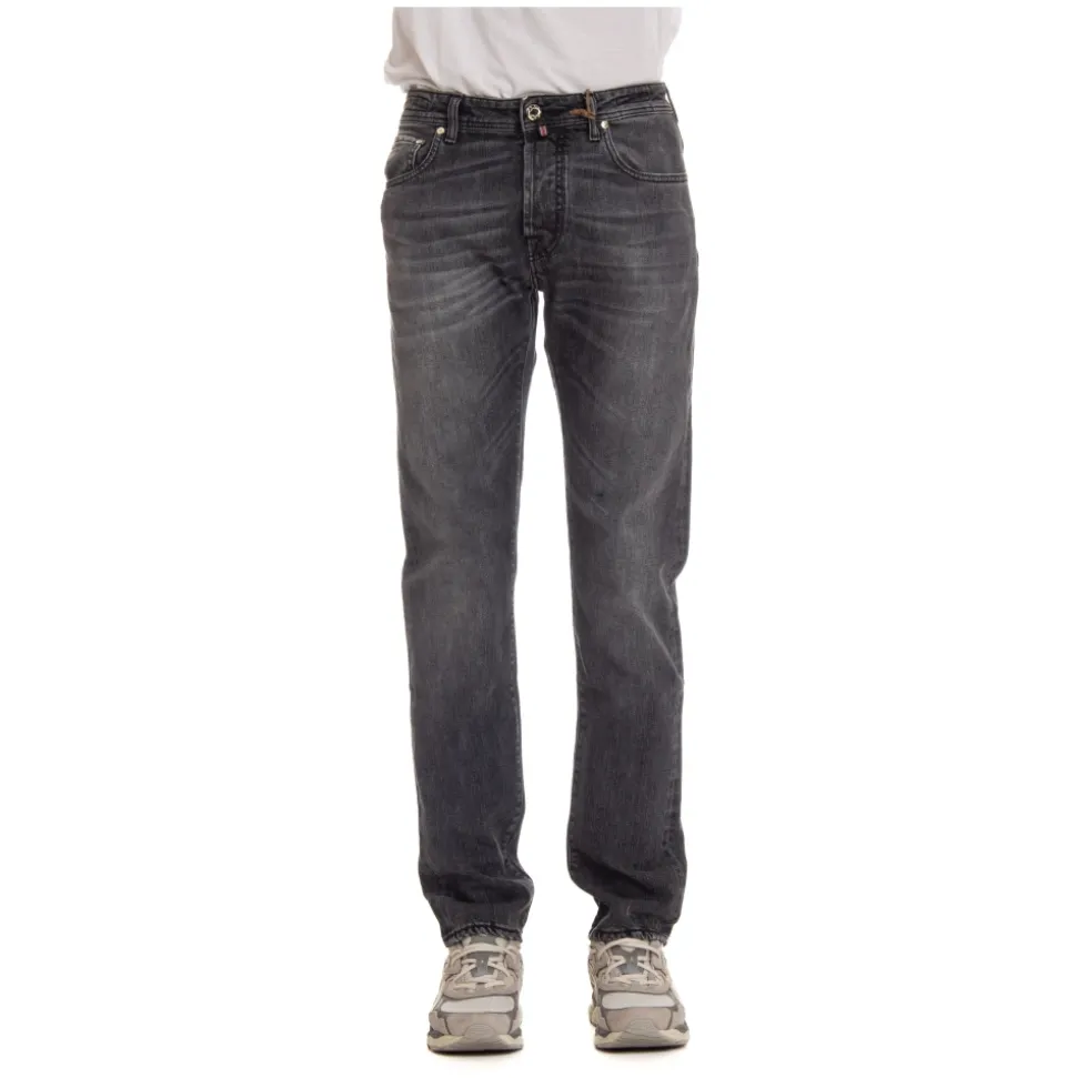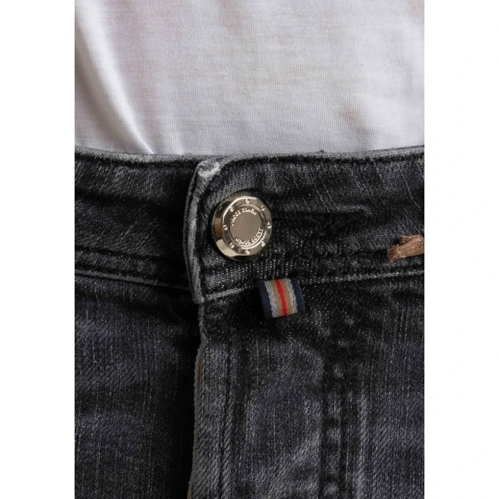 Oplev håndværket fra Jacob Cohën med disse Limited Edition Denim Jeans, designet med omhyggelig sans for detaljer og med luksuriøse elementer som skjortestof i lommeforet og sølvbelagte knapper. Produkt detaljer: Grå | Denim | Skjortestof i lommeforet | Sartorial knaplukning | Sølvbelagte knapper | Nummereret label | Dimensioner og pasform: Bard fit giver en lidt højere talje og et mere komfortabelt ben. | Sammensætning og pleje: 90% bomuld | 10% polyester | Vask med vrangen ud for at bevare den luksuriøse denim.
