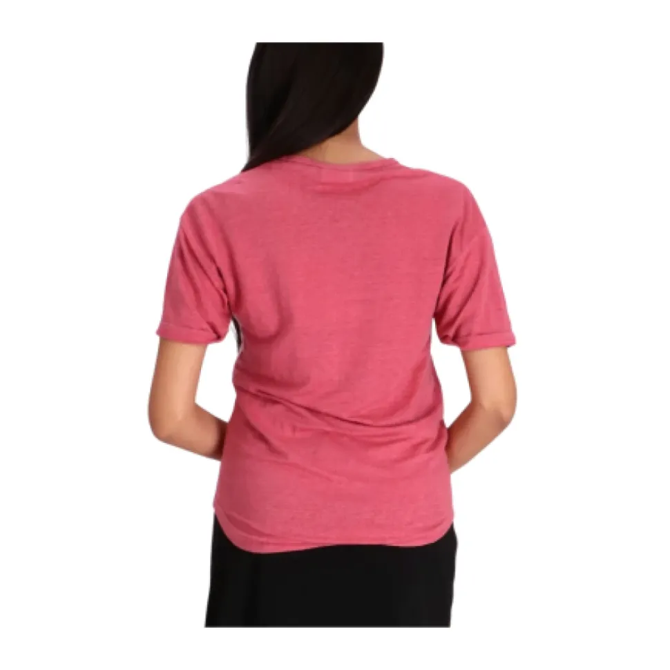 Isabel Marant T-shirt i hør med frontlogo, rund hals, korte ærmer, buet kant, lavet med mindst 50% materialer.