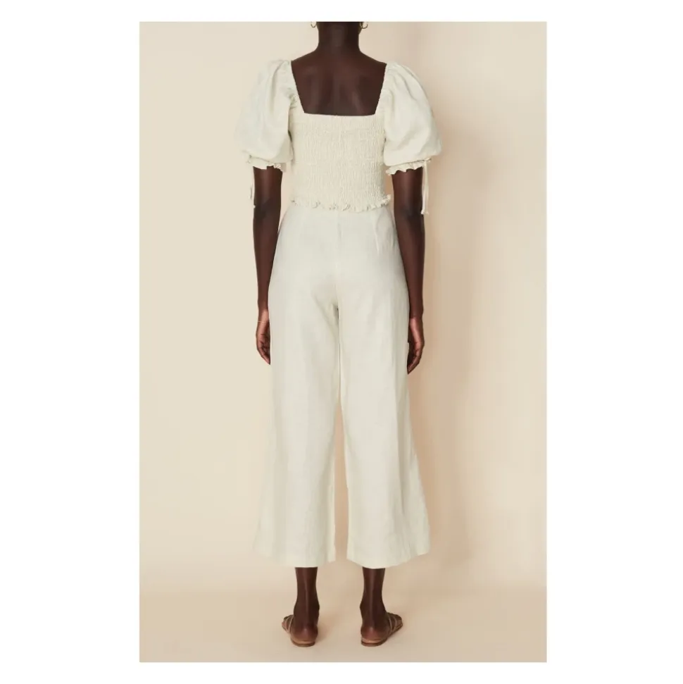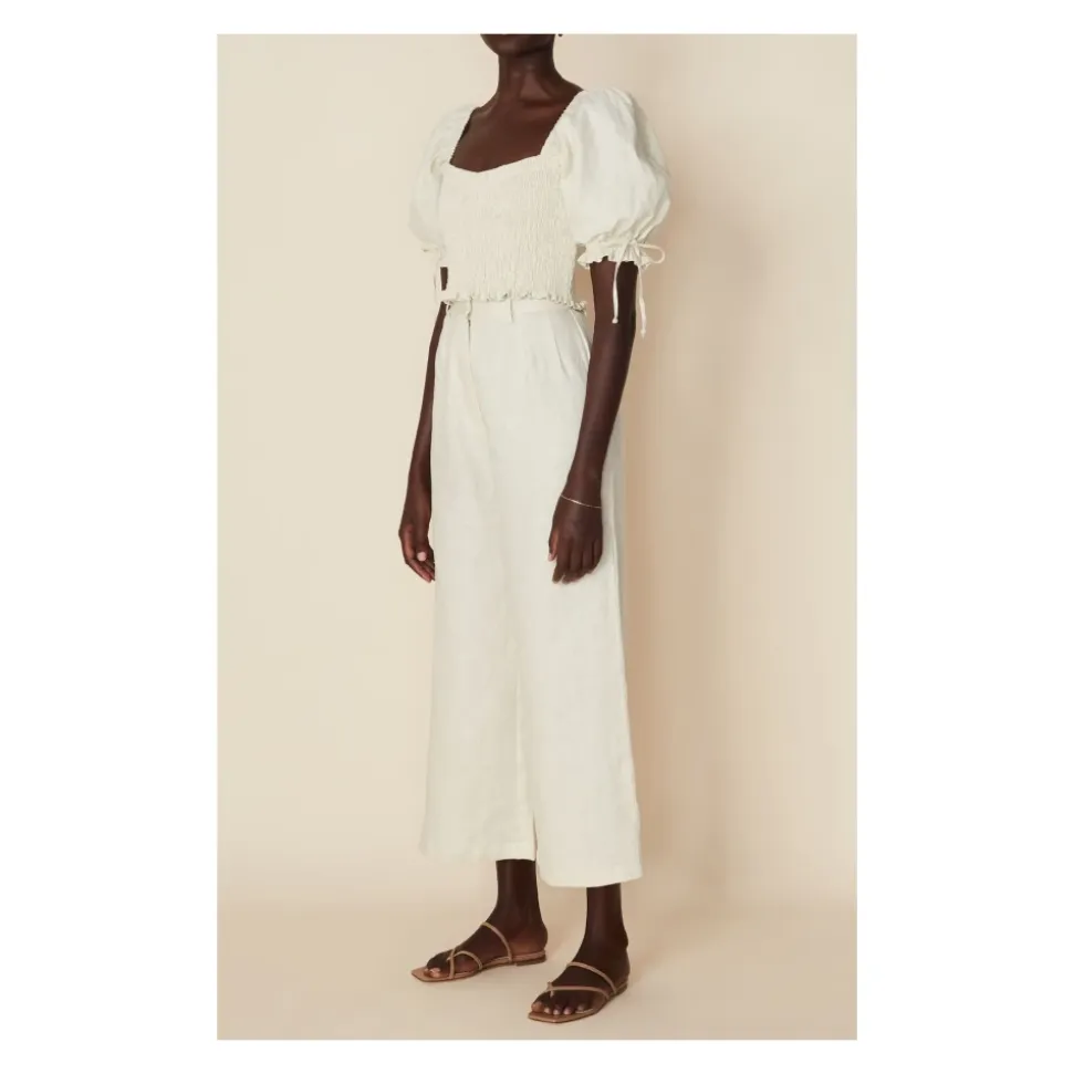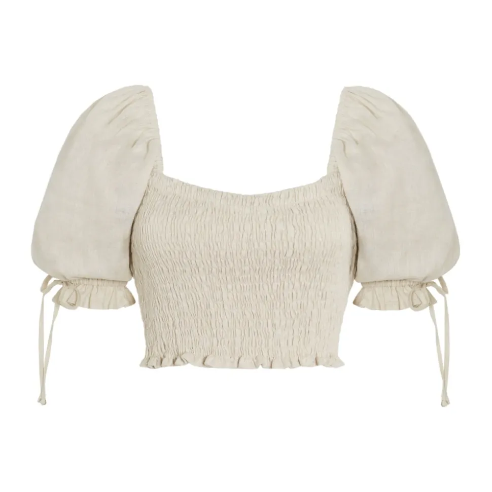 Lisanza Linen Top fra Faithfull The Brand er en cropped linnedbluse med smockdetaljer på overdelen og en sweetheart-udskæring, designet til et nemt, feminint look, der passer godt sammen med højtaljede nederdele eller afslappede bukser. Nøgleattributter: Beige | Ensfarvet creme | Linned | Smockdetaljer på overdelen | Sweetheart-udskæring | Pufærmer | Cropped længde | Dimensioner & pasform: Normal i størrelsen | Sammensætning & pleje: 100% Linned