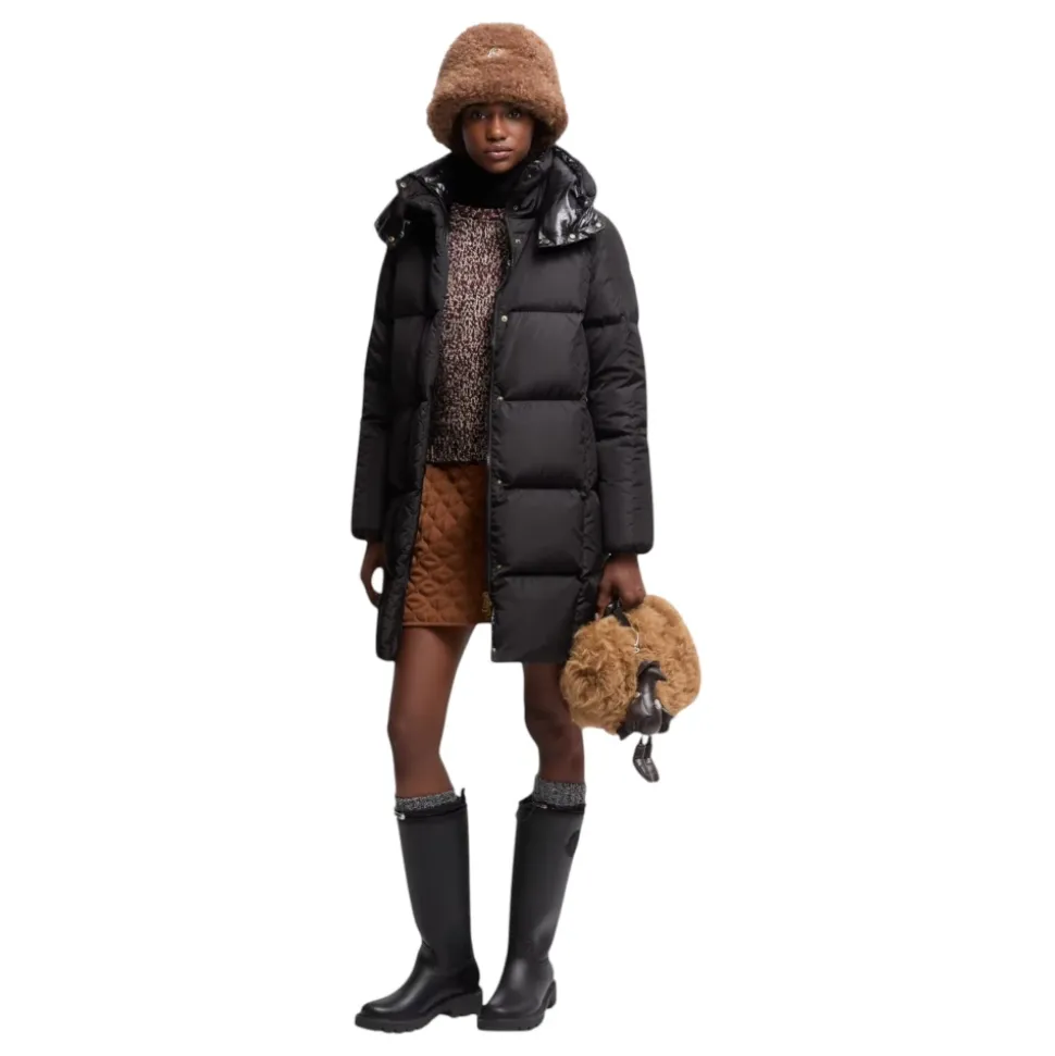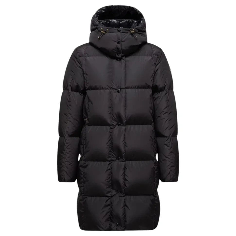 Moncler Litte Square-Quilted Hooded Long Down Jacket kombinerer tekniske materialer og geometrisk quiltning for at levere varmt, langt overtøj, der er ideelt til byliv og aktive vinterdage. Vigtige egenskaber: Sort | Nylon teknik | Vandafvisende | Letvægt | Isolerende (dunfyldt) | Holdbart stof | Aftagelig, justerbar hætte | Lynlås- og trykknaplukning | To lynlåslommer | Elastiske manchetter | Firkantet quiltet mønster | Silkemat finish | Skinnende nylon laqué foring | Lang silhuet | Dimensioner og pasform: Længde (krave til kant): ca. 90 cm | Almindelig pasform | Modellen er 180 cm og bærer størrelse 0 | Sammensætning og pleje: Ydre: Nylon teknik | Fyld: 90% dun, 10% fjer | Foring: Nylon laqué