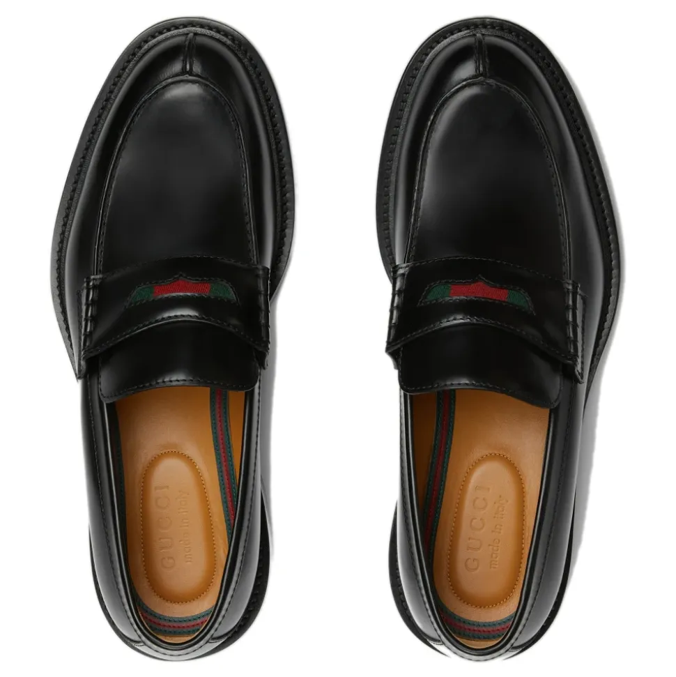 Gucci Loafer med Web er en sort læder loafer med brandets signatur grønne og røde Web stribe. Dens rene slip-on silhuet passer til både smart-casual og formelle outfits. Nøgleattributter: Sort | Grøn | Rød | Læder | Lædersål | Grøn og rød Web detalje på overdelen | Loafer silhuet | Slip-on konstruktion | Dimensioner & pasform: Sålhøjde: 20 mm | Sammensætning & pleje: Læder (overdel) | Lædersål | Grøn og rød Web (tekstil detalje) | Beskyt mod direkte lys, varme og regn. Hvis den bliver våd, tør den straks med en blød klud. Fyld med silkepapir for at bevare formen og opbevar i den medfølgende flannelpose og æske. Rengør med en blød, tør klud eller børste.