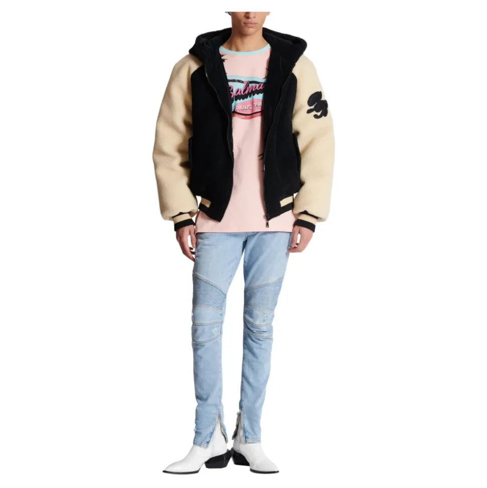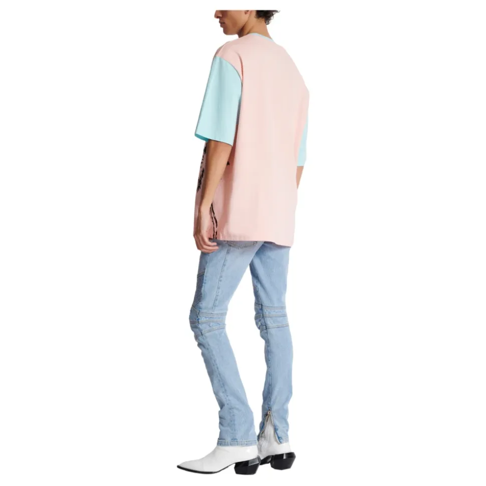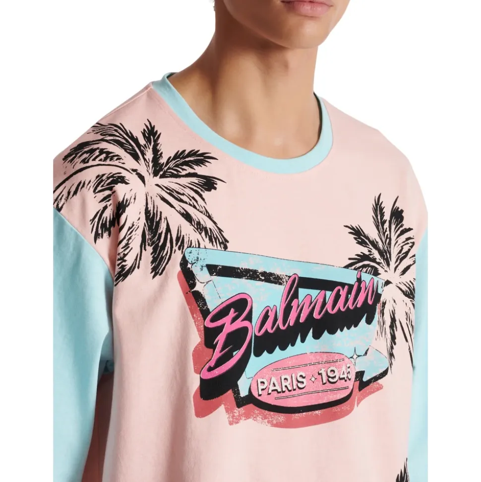 Balmain Miami trykt T-shirtnOversize pasformnRund hals med kontrastribbet kantnKontrasterende korte ærmernKontrasterende Balmain Miami tryk på forsidennModellen måler 189 cm og bruger en størrelse MnHovedmateriale: 100% bomuldnProduceret i PortugaliVare: DH1EH015GD74n100% af bomuldsfibrene, der er brugt til at lave dette tøj, er certificeret og dyrket