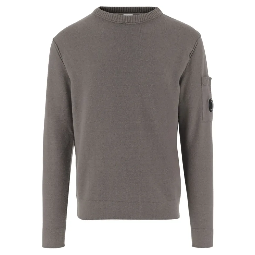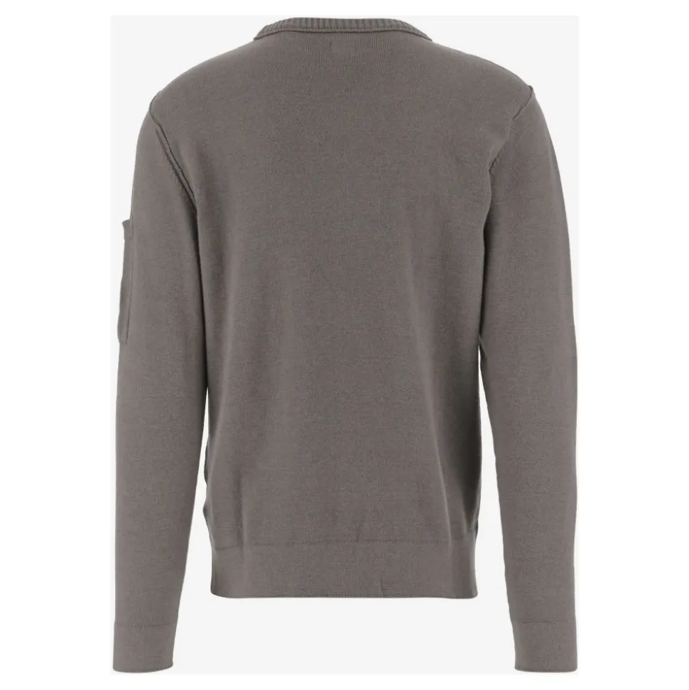 Hold dig stilfuld og komfortabel med denne C.P. Company herregrå sweater. Lavet af bomuldsblanding, denne rundhalsede striktrøje har ribstrikket halsudskæring, lange ærmer og en unik lomme på ærmet med logodetaljer. Designet med en lige kant, denne sweater er lavet i Tunesien og består af 53% bomuld, 27% polyester og 20% polyamid. Modellen er 185 cm høj, med en brystvidde på 94 cm, talje på 75 cm, hofter på 93 cm og skulderbredde på 48 cm, og bærer en størrelse M.