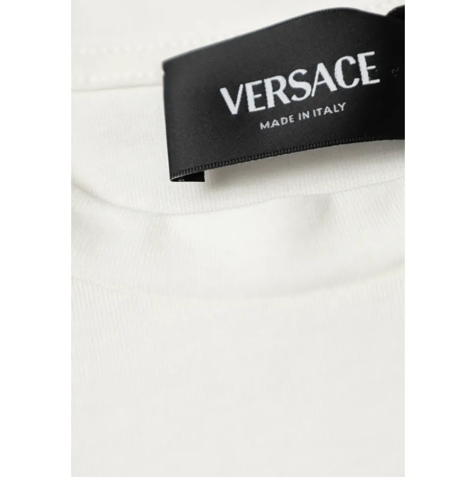Versace præsenterer Logo Kjolen, en klassisk model, der kombinerer en blød bomuldsstrikket overdel med en subtilt skinnende barokprintet nederdel for et raffineret, festligt look. Vigtigste egenskaber: Hvid | Bomuld | Tætsiddende overdel | Korte ærmer | Bred nederdel | Længde over knæet | Barokprint på nederdelen | Central “VERSACE” inskription | Mærke med “MADE IN ITALY” | Dimensioner og pasform: Klassisk snit | Tætsiddende overdel | Bred nederdel, der ender over knæet | Korte ærmer | Sammensætning og pleje: 100% bomuld