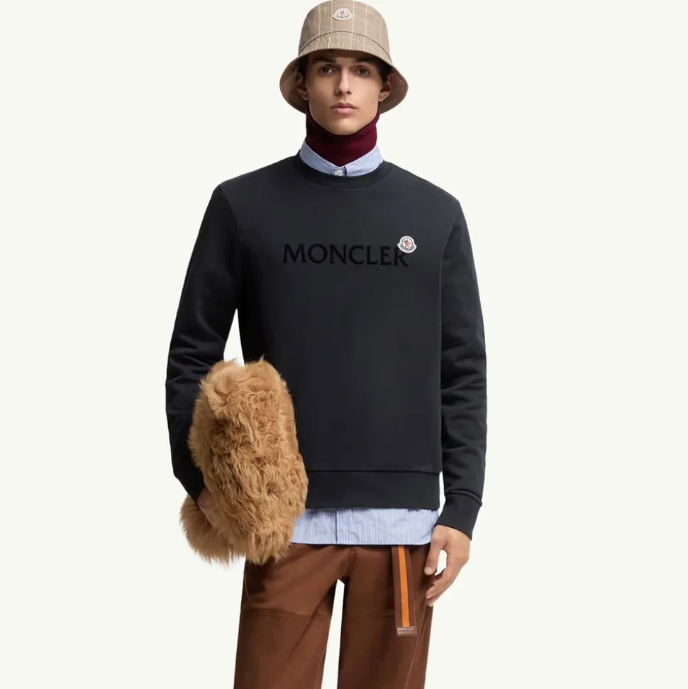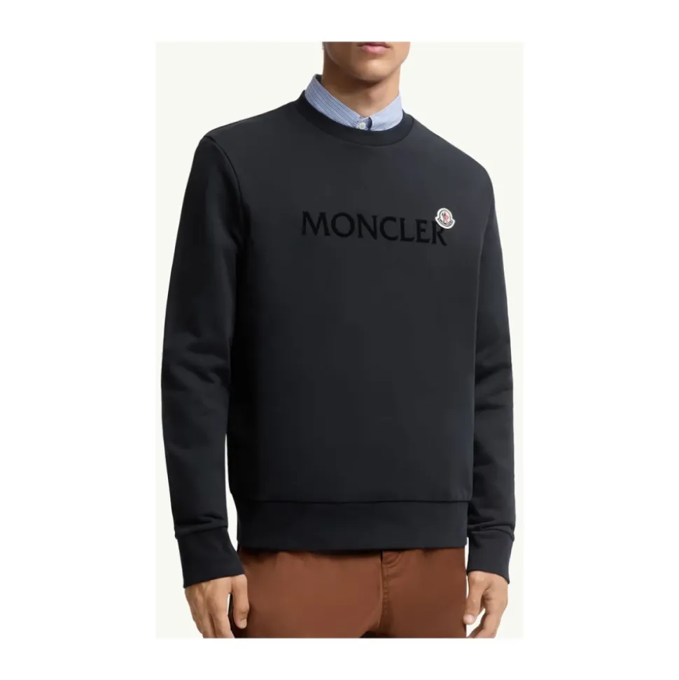 Forkæl dig selv med denne klassiske navy sweatshirt fra Moncler. Fremstillet af 100% bomuld, den har en rund hals, Moncler logo og logo-patch. Modellen er 188 cm høj og har en størrelse Large på.