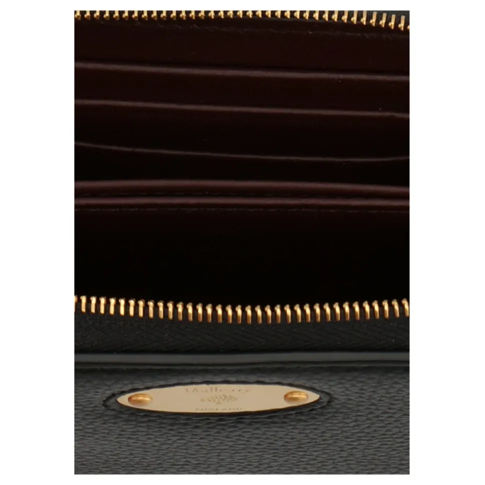 Mulberry Logo Plaque Wallet er en kompakt læderpung designet til hverdagsbrug. Den har en logo-plakette foran og sikker lynlåslukning til kort, kontanter og mønter. Nøgleattributter: Sort | Læder | Lynlåslukning | Læder lynlåstrækker | To rum med kiler | Fire kortlommer | Tre indvendige stiklommer | Logo-plakette foran | Lille klassisk kornet tekstur | Messingfarvet hardware | Nappalining | Mål og pasform: B 11 x H 8,5 x D 2,2 cm | Sammensætning og pleje: 100% okselæder