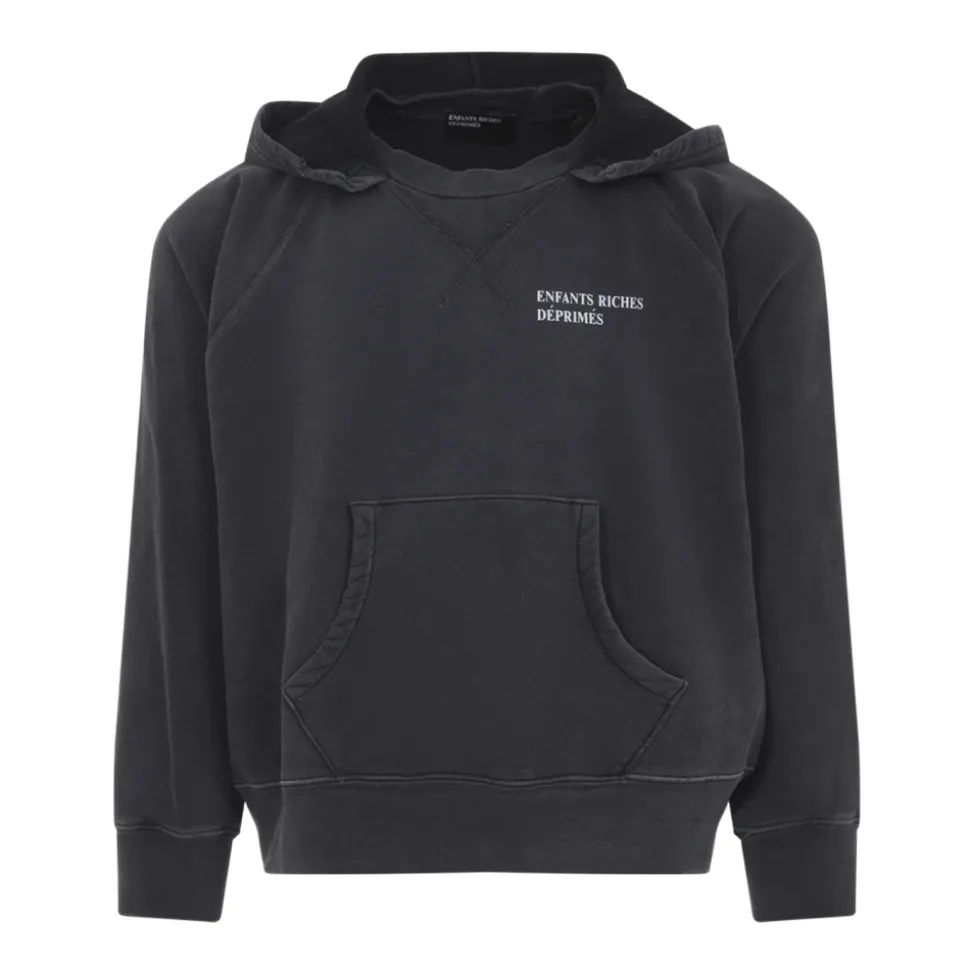Enfants Riches Déprimés Logo Raglan Afterhood er en mellemvægtig bomuldshoodie, der kombinerer en vintage-vasket finish med et markant, kontrastfarvet logo på brystet for et afslappet, fritidslook. Nøgleattributter: Lys antik sort | Sort | Bomulds børstet fransk frotté | Mellemvægt | Børstet for blødhed | Fast hætte | Kængurulomme | Ribstrikkede manchetter og linning | Trykt logo på brystet | Raglanærmer | Rund hals | Kontrasterende hvidt logo med bogstaver | Tonal hætte | Lige kant | Distressed / vintage vasket effekt | Dimensioner og pasform: Klassisk vintage pasform | Sammensætning og pleje: 100% bomuld | Maskinvask kold med lignende farver. Tørretumbles ved lav varme.