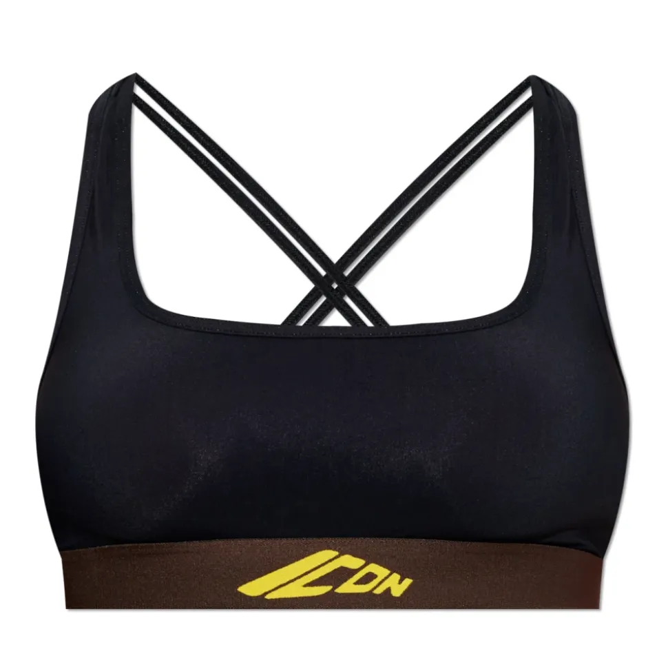 Vi præsenterer Logo Top fra Dsquared2, en raffineret beklædningsgenstand, der udstråler elegance og minimalisme. Den er fremstillet i dyb sort med strækbart polyamid og elastan, og den giver enestående komfort til træning og fritid. Produkt detaljer: Sort | Polyamid | Elastan | Simpel halsudskæring | Tynde stropper der krydser på ryggen | Elastikbånd med fedt gult `ICON`-logo | Ryggen er prydet med `Dsquared2`-bogstaver i gylden nuance | Dimensioner og pasform: Regular fit | Sammensætning og pleje: Polyamid | Elastan | Maskinvask kold, tørretumbles ved lav varme