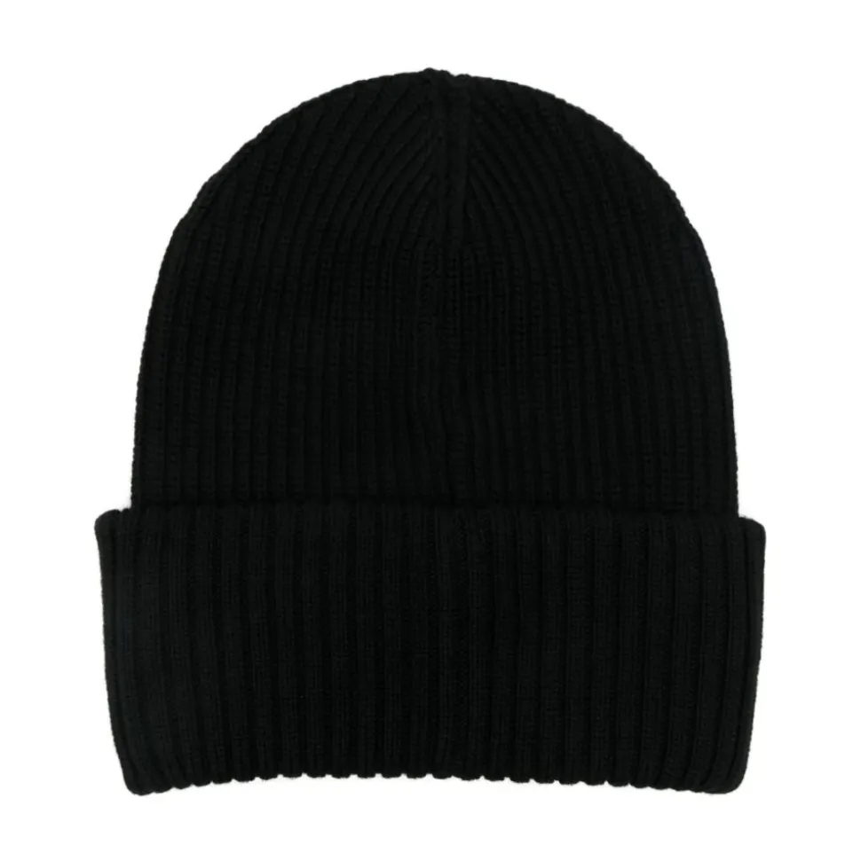 Moncler Logo Wool Beanie kombinerer en ribstrik med en ombukket kant og et signaturlogo-mærke. Det er en alsidig, mellemvægt beanie designet til hverdagsbrug. Vigtige egenskaber: Sort | Ombukket kant | Ribbet tekstur | Logo-mærke | Dimensioner og pasform: One size | Sammensætning og pleje: Bomuld | Cashmere