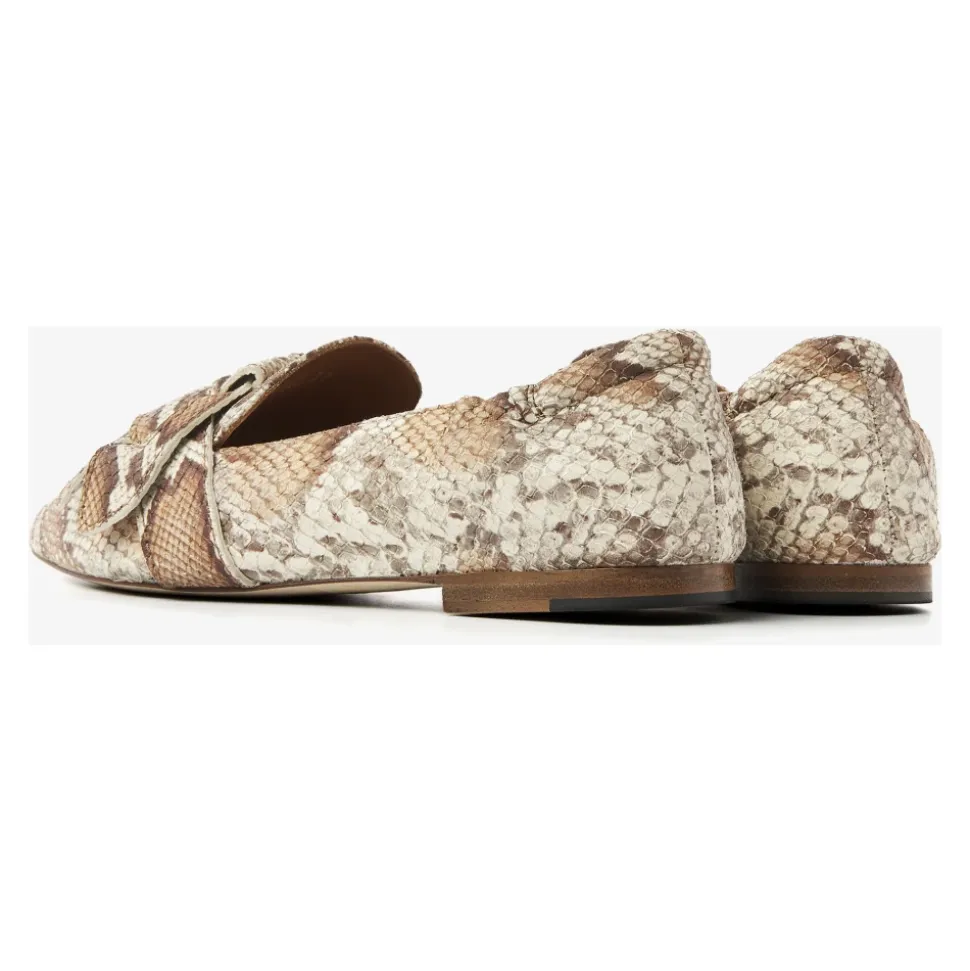 Via Vai Lola Rayne Loafers kombinerer en spids silhuet med en elegant knudedetalje på vristen, hvilket giver en raffineret slip-on sko til hverdagsbrug. Overdelen i slangeskindspræget læder og den polstrede fodseng gør dem til et stilfuldt og behageligt valg til arbejde eller afslappede looks. Vigtigste egenskaber: Brun | Cognac | Slangeskindsprint | Læder | Polstret komfort | Slip-on konstruktion | Elastisk hæl | Skumfodseng | Læderforing | Ikke-aftagelig fodseng | Spids tå | Knudedetalje på vristen | Flad hæl | Dimensioner & pasform: Hælhøjde: 1.0 CM | Såltykkelse: 0.5 CM | Sammensætning & pleje: Læder | Læderforing | Nabuccato sål | Behandl før første brug med en imprægneringsspray, og gentag regelmæssigt for at beskytte mod snavs og pletter.