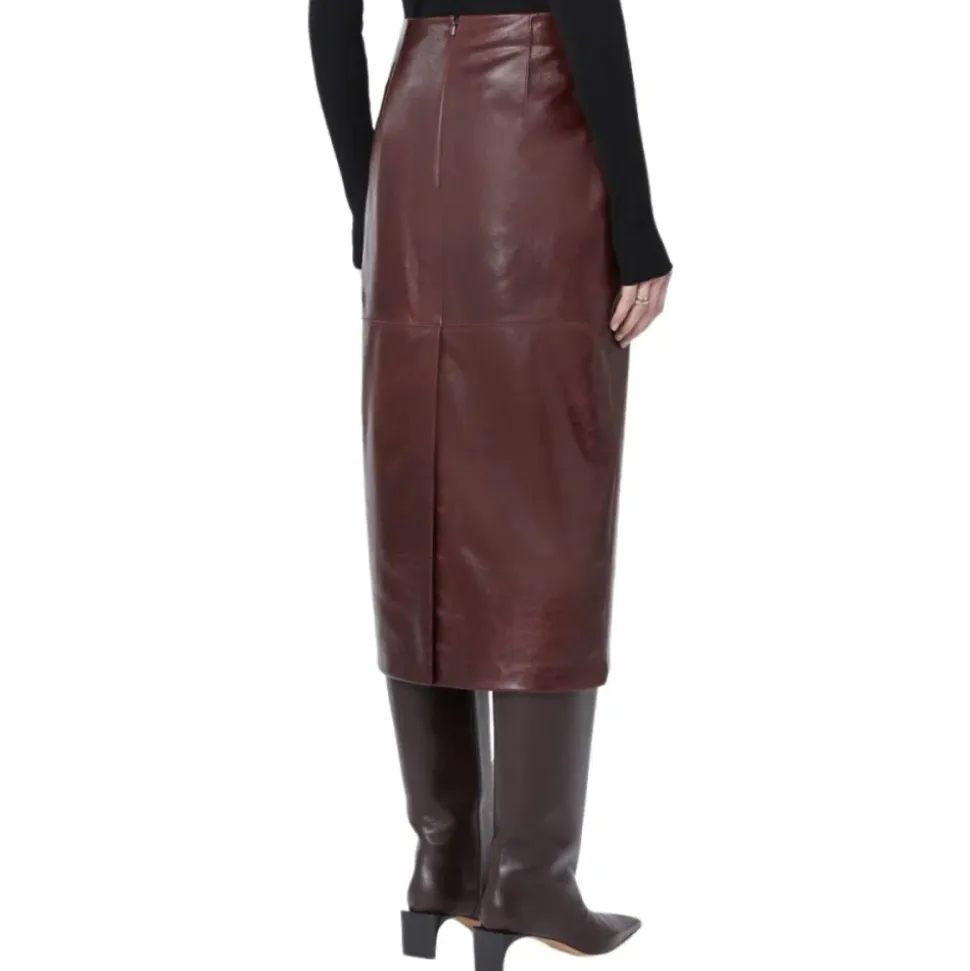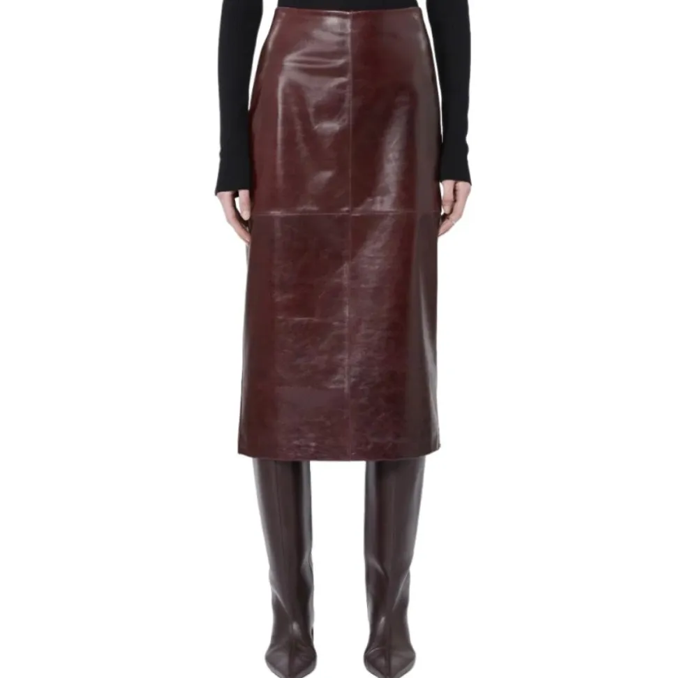 Sportmax Longuette Skirt i lammeskind har en strømlinet midi-silhuet med en lynlås bagpå og slids bagpå – designet til raffineret brug fra dag til aften. Vigtigste egenskaber: Rød | Bordeaux | Lammeskind | Lynlåslukning bagpå | Midi-længde | Indsnit | Slids bagpå | Dimensioner og pasform: Lige pasform | Almindelig pasform | Sammensætning og pleje: Lammeskind