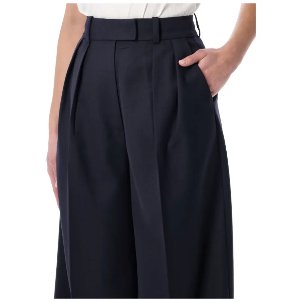 Anine Bings Lou Trouser tilbyder en dristig, moderne silhuet med en høj talje og et ultra-bredt ben. Designet til et elegant hverdagslook, der kombinerer struktureret skræddersyning med afslappet komfort. Vigtige egenskaber: Blå | Navy | Viskoseblanding | Let, åndbart stof | Forlænget flig og lynlåslukning foran | Fuldt foret | Paspoleret baglomme | Høj talje | Ultra-bredt ben | Lav skridtsøm | Dobbelt plissering | Fuld længde på indersømmen | Mål & pasform: Indersøm: 81,3 cm | Livhøjde: 39,4 cm | Talje: 71,1 cm | Hofte: 119,4 cm | Benåbning: 73,2 cm | Model: 1,75 m, bærer størrelse 4 | Høj talje, ultra-bredt ben, fuld længde på indersømmen; vælg din normale størrelse. | Sammensætning & pleje: 91% Viskose | 8% Polyester | 1% Elastan | Foring: 100% Polyester | Renseri