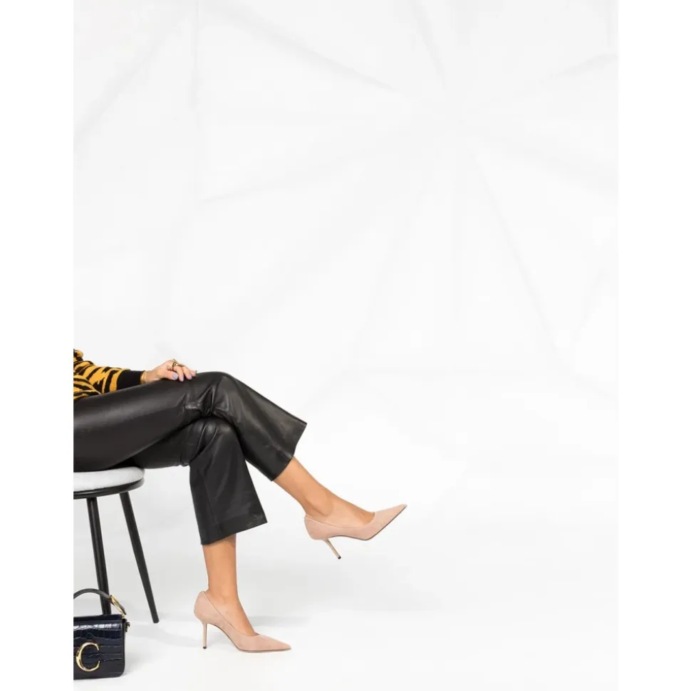 Jimmy Choo Love 85 Pumps i ballet pink er et sofistikeret valg til enhver lejlighed, med en spids tå og en elegant stilet hæl, der giver en elegant silhuet. Produkt detaljer: Ballet Pink | Suede | Spids tå | Stilet hæl | JC emblem | Dimensioner og pasform: Normal pasform | Sammensætning og pleje: 100% Læder | Specialrensning